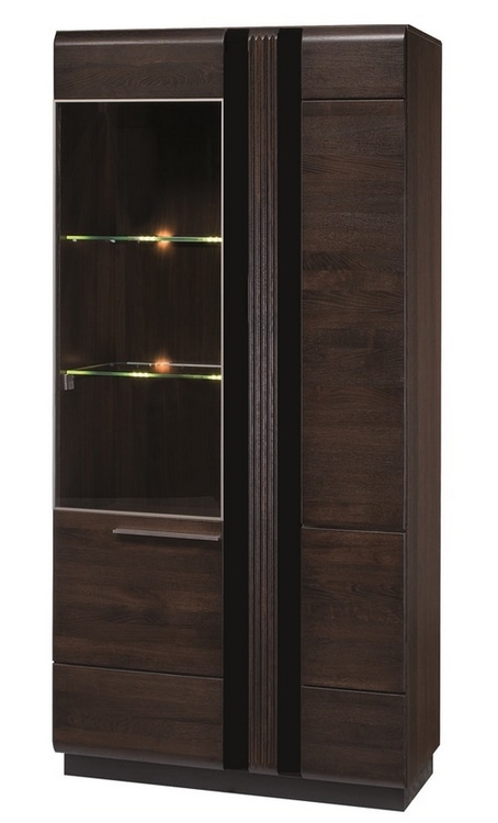 Široká vitrína ze sektorové řady PORTI značkového výrobce Szynaka. Vitrína má 2 dvířka. Systém PORTI je exkluzivní kolekce navržena v moderním duchu. Struktura ušlechtilého masivního dubu na přední straně a přírodní dýha na korpusu zdůrazňuje velmi klasickou barvu čokoládový dub. Opakující se prvek riflování v kombinaci s černým sklem je dekorační motiv, který se odráží v každém bloku. LED osvětlení vitrín lze dokoupit. Použitelnost alternativního spínače zjednoduší každodenní používání a osvětlený vnitřek vybraných bloků přinese ještě více energie a radosti v každodenním životě a nenápadně upozorní na povahu exponovaných prvků. Celá řada se vyznačuje elegancí a jednoduchými tvary, které zaručují plné využití prostoru. Barevné provedení – čokoládový dub. Elegantní úchyty jsou z kovu. Dodáváme ve smontovaném stavu.CASA 75024