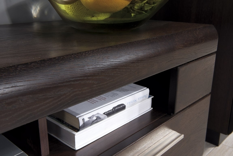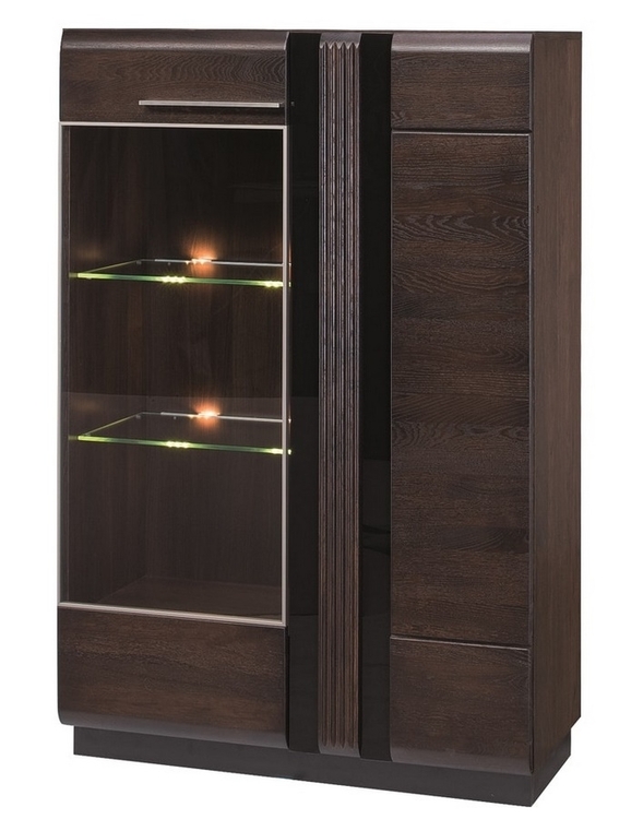 Nízká vitrína ze sektorové řady PORTI značkového výrobce Szynaka. Vitrína má 2 dvířka. Systém PORTI je exkluzivní kolekce navržena v moderním duchu. Struktura ušlechtilého masivního dubu na přední straně a přírodní dýha na korpusu zdůrazňuje velmi klasickou barvu čokoládový dub. Opakující se prvek riflování v kombinaci s černým sklem je dekorační motiv, který se odráží v každém bloku. LED osvětlení vitrín lze dokoupit. Použitelnost alternativního spínače zjednoduší každodenní používání a osvětlený vnitřek vybraných bloků přinese ještě více energie a radosti v každodenním životě a nenápadně upozorní na povahu exponovaných prvků. Celá řada se vyznačuje elegancí a jednoduchými tvary, které zaručují plné využití prostoru. Barevné provedení – čokoládový dub. Elegantní úchyty jsou z kovu. Dodáváme ve smontovaném stavu.CASA 75024