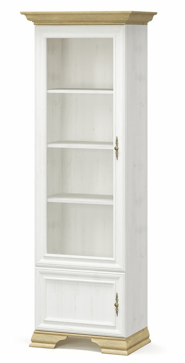 Vitrína ze sektorové řady nábytku v romantickém stylu. Nábytek je vyroben z kvalitní LTD v kombinaci s MDF v barevné kombinaci borovice andersen/zlatý dub. V naší nabídce najdete další jednotlivé prvky tohoto nábytku, ze kterého si můžete zařídit obývací pokoj dle vlastních potřeb. Dodáváme v demontovaném stavu.CASA 97011