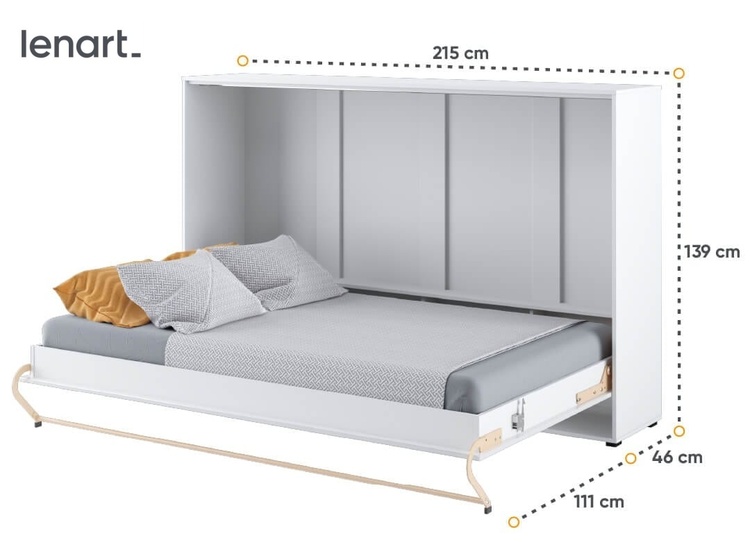 Široká výklopná postel 120 bílá mat. Rozměry viz obrázek. Každý kus nábytku v novém provedení Vám umožní dokonale zařídit menší ložnici nebo obývací, dětský či studentský pokoj. Se sklápěcí postelí Vás už nebude trápit malý prostor Vaší domácnosti. Díky stabilní konstrukci zaručuje pohodlný odpočinek. Bezpečnost je velmi důležitá a tak má naše sklápěcí postel mechanismus, kterým zablokujete postel proti samovolnému otevření. Při sklápění postele FUNKCE STOP zajistí bezpečné otevírání i zavírání. Tento výjimečný systém Vám umožní manipulaci pouze jedním prstem. Když je postel sklopená, vypadá jako běžná komoda. Vyklopením se vytáhne celá šířka postele. Při rozložení postele má hloubku 157 cm. Rám je nutno přišroubovat ke zdi, nosnost postele je 150 kg. Rošt postele je v ceně, matrace není součástí, je potřeba ji dokoupit. Doporučujeme velikost 120 × 200 x výšku do 18 cm. Po sklopení postele vzniká prostor pod postelí o výšce 20,4 cm. Nábytek je vyroben z kvalitního lamina s ABS hranou. Lamino je odolné proti poškrábání, poškození, vlhkosti a vysokým teplotám. Postel nabízíme v několika velikostech a barevných provedeních. Dodáváme v demontovaném stavu.Můžete si prohlédnout prezentační video, klikněte <a href=" CASA 73005