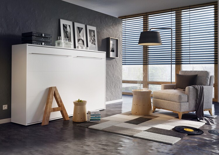 Široká výklopná postel 120 bílá lesk/bílá mat. Korpus nábytku je v matné bílé barvě, čelo nábytku je v bílém lesku. Rozměry viz obrázek. Každý kus nábytku v novém provedení Vám umožní dokonale zařídit menší ložnici nebo obývací, dětský či studentský pokoj. Se sklápěcí postelí Vás už nebude trápit malý prostor Vaší domácnosti. Díky stabilní konstrukci zaručuje pohodlný odpočinek. Bezpečnost je velmi důležitá a tak má naše sklápěcí postel mechanismus, kterým zablokujete postel proti samovolnému otevření. Při sklápění postele FUNKCE STOP zajistí bezpečné otevírání i zavírání. Tento výjimečný systém Vám umožní manipulaci pouze jedním prstem. Když je postel sklopená, vypadá jako běžná komoda. Vyklopením se vytáhne celá šířka postele. Při rozložení postele má hloubku 157 cm. Rám je nutno přišroubovat ke zdi, nosnost postele je 150 kg. Rošt postele je v ceně, matrace není součástí, je potřeba ji dokoupit. Doporučujeme velikost 120 × 200 x výšku do 18 cm.Po sklopení postele vzniká prostor pod postelí o výšce 20,4 cm. Nábytek je vyroben z kvalitního lamina s ABS hranou. Lamino je odolné proti poškrábání, poškození, vlhkosti a vysokým teplotám. Postel nabízíme v několika velikostech a barevných provedeních. Dodáváme v demontovaném stavu.Můžete si prohlédnout prezentační video, klikněte <a href=" CASA 73005