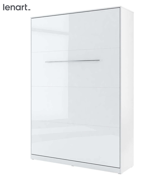 Vysoká výklopná postel 140 bílá lesk/bílá mat. Korpus nábytku je v matné bílé barvě, čelo nábytku je v bílém lesku. Rozměry viz obrázek. Každý kus nábytku v novém provedení Vám umožní dokonale zařídit menší ložnici nebo obývací, dětský či studentský pokoj. Se sklápěcí postelí Vás už nebude... více informací o zboží