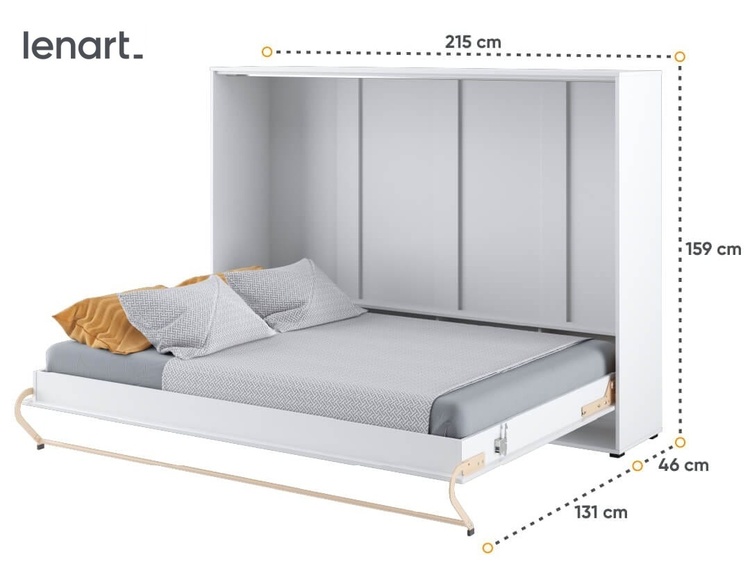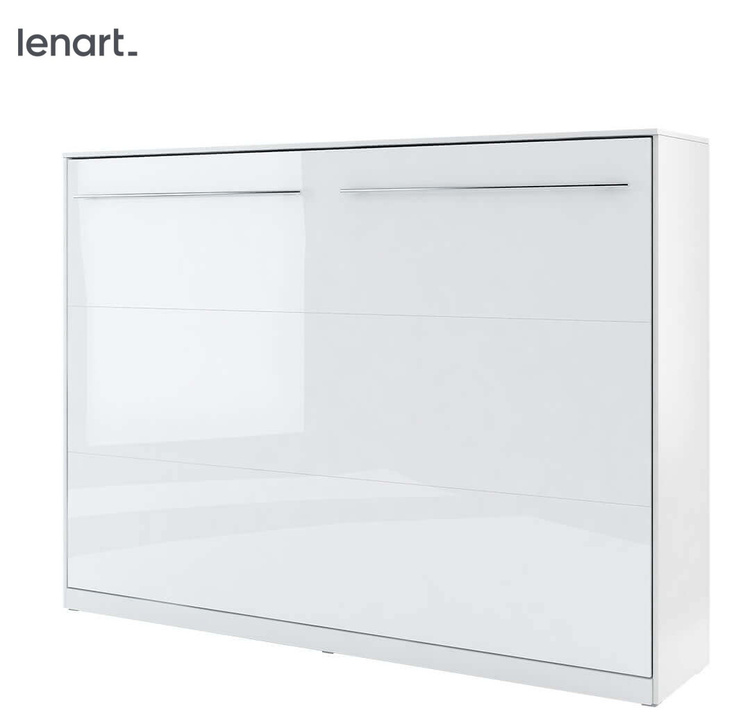 Široká výklopná postel 140 bílá lesk/bílá mat. Korpus nábytku je v matné bílé barvě, čelo nábytku je v bílém lesku. Rozměry viz obrázek. Každý kus nábytku v novém provedení Vám umožní dokonale zařídit menší ložnici nebo obývací, dětský či studentský pokoj. Se sklápěcí postelí Vás už nebude trápit malý prostor Vaší domácnosti. Díky stabilní konstrukci zaručuje pohodlný odpočinek. Bezpečnost je velmi důležitá a tak má naše sklápěcí postel mechanismus, kterým zablokujete postel proti samovolnému otevření. Při sklápění postele FUNKCE STOP zajistí bezpečné otevírání i zavírání. Tento výjimečný systém Vám umožní manipulaci pouze jedním prstem. Když je postel sklopená, vypadá jako běžná komoda. Vyklopením se vytáhne celá šířka postele. Při rozložení postele má hloubku 177 cm. Rám je nutno přišroubovat ke zdi, nosnost postele je 200 kg. Rošt postele je v ceně, matrace není součástí, je potřeba ji dokoupit. Doporučujeme velikost 140 × 200 x výšku do 18 cm. Po sklopení postele vzniká prostor pod postelí o výšce 20,4 cm. Nábytek je vyroben z kvalitního lamina s ABS hranou. Lamino je odolné proti poškrábání, poškození, vlhkosti a vysokým teplotám. Postel nabízíme v několika velikostech a barevných provedeních. Dodáváme v demontovaném stavu.Můžete si prohlédnout prezentační video, klikněte <a href=" CASA 73005