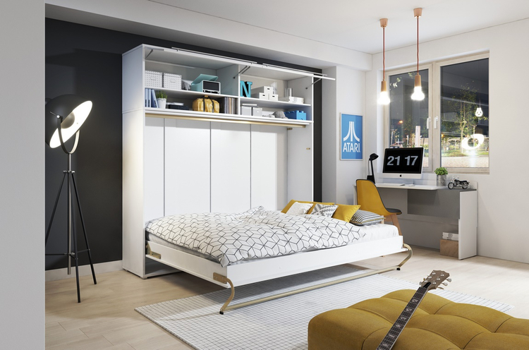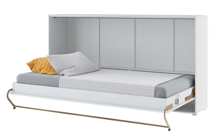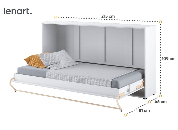 Široká výklopná postel 90 bílá mat. Rozměry viz obrázek. Každý kus nábytku v novém provedení Vám umožní dokonale zařídit menší ložnici nebo obývací, dětský či studentský pokoj. Se sklápěcí postelí Vás už nebude trápit malý prostor Vaší domácnosti. Díky stabilní konstrukci zaručuje pohodlný odpočinek. Bezpečnost je velmi důležitá a tak má naše sklápěcí postel mechanismus, kterým zablokujete postel proti samovolnému otevření. Při sklápění postele FUNKCE STOP zajistí bezpečné otevírání i zavírání. Tento výjimečný systém Vám umožní manipulaci pouze jedním prstem. Když je postel sklopená, vypadá jako běžná komoda. Při rozložení postele má hloubku 127 cm. Vyklopením se vytáhne celá šířka postele. Rám je nutno přišroubovat ke zdi, nosnost postele je 100 kg. Rošt postele je v ceně, matrace není součástí, je potřeba ji dokoupit. Doporučujeme velikost 90 × 200 x výšku do 18 cm. Po sklopení postele vzniká prostor pod postelí o výšce 20,4 cm. Nábytek je vyroben z kvalitního lamina s ABS hranou. Lamino je odolné proti poškrábání, poškození, vlhkosti a vysokým teplotám. Postel nabízíme v několika velikostech a barevných provedeních. Dodáváme v demontovaném stavu.Můžete si prohlédnout prezentační video, klikněte <a href=" CASA 73005