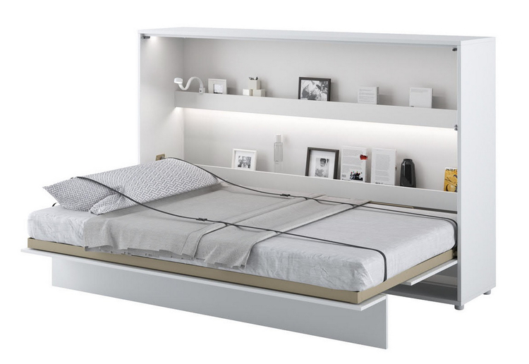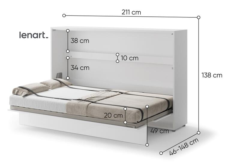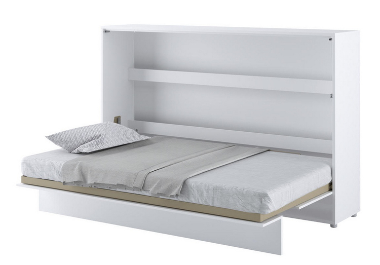 Široká výklopná postel 120 bílá mat. Rozměry viz obrázek. Se sklápěcí postelí Vás už nebude trápit malý prostor Vaší domácnosti. Díky stabilní konstrukci zaručuje pohodlný odpočinek. Pneumatický mechanismus sklápění postele zajistí bezpečné otevírání a je doplněn SOFT CLOSE systémem tichého zavírání. Tento výjimečný systém Vám umožní manipulaci pouze jedním prstem. Když je postel sklopená, vypadá jako běžná skříň. Vyklopením se vytáhne celá šířka postele. Při lozložení postele má hloubku 148 cm. Uvnitř skříně jsou praktické police na knížky nebo dekorační předměty, vše máte na dosah ruky. Maximální zatížení polic je 5 kg. Rám je nutno přišroubovat ke zdi, nosnost postele je 150 kg. Rošt postele je v ceně, matrace není součástí, je potřeba ji dokoupit. Doporučujeme velikost 120 × 200 x výšku do 18 cm. Po sklopení postele vzniká prostor pod postelí o výšce 24,9 cm. Nábytek je vyroben z kvalitního lamina s ABS hranou. Lamino je odolné proti poškrábání, poškození, vlhkosti a vysokým teplotám. Postel nabízíme v několika velikostech a barevných provedeních. K posteli je možné dokoupit LED osvětlení. Dodáváme v demontovaném stavu.Můžete si prohlédnout prezentační video, klikněte <a href=" CASA 73026
