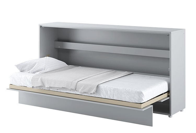 Široká výklopná postel 90 šedá mat. Rozměry viz obrázek. Se sklápěcí postelí Vás už nebude trápit malý prostor Vaší domácnosti. Díky stabilní konstrukci zaručuje pohodlný odpočinek. Pneumatický mechanismus sklápění postele zajistí bezpečné otevírání a je doplněn SOFT CLOSE systémem tichého zavírání. Tento výjimečný systém Vám umožní manipulaci pouze jedním prstem. Když je postel sklopená, vypadá jako běžná skříň. Vyklopením se vytáhne celá šířka postele. Při lozložení postele má hloubku 118 cm. Uvnitř skříně jsou praktické police na knížky nebo dekorační předměty, vše máte na dosah ruky. Maximální zatížení polic je 5 kg. Rám je nutno přišroubovat ke zdi, nosnost postele je 100 kg. Rošt postele je v ceně, matrace není součástí, je potřeba ji dokoupit. Doporučujeme velikost 90 × 200 x výšku do 18 cm. Po sklopení postele vzniká prostor pod postelí o výšce 24,9 cm. Nábytek je vyroben z kvalitního lamina s ABS hranou. Lamino je odolné proti poškrábání, poškození, vlhkosti a vysokým teplotám. Postel nabízíme v několika velikostech a barevných provedeních. K posteli je možné dokoupit LED osvětlení. Dodáváme v demontovaném stavu.Můžete si prohlédnout prezentační video, klikněte <a href=" CASA 73026
