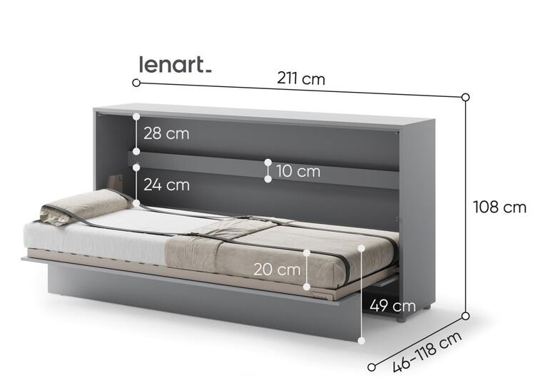Široká výklopná postel 90 šedá mat. Rozměry viz obrázek. Se sklápěcí postelí Vás už nebude trápit malý prostor Vaší domácnosti. Díky stabilní konstrukci zaručuje pohodlný odpočinek. Pneumatický mechanismus sklápění postele zajistí bezpečné otevírání a je doplněn SOFT CLOSE systémem tichého... více informací o zboží