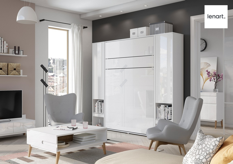 Vysoká výklopná postel 140 bílá lesk/bílá mat. Se sklápěcí postelí Vás už nebude trápit malý prostor Vaší domácnosti. Díky stabilní konstrukci zaručuje pohodlný odpočinek. Pneumatický mechanismus sklápění postele zajistí bezpečné otevírání a je doplněn SOFT CLOSE systémem tichého zavírání.... více informací o zboží