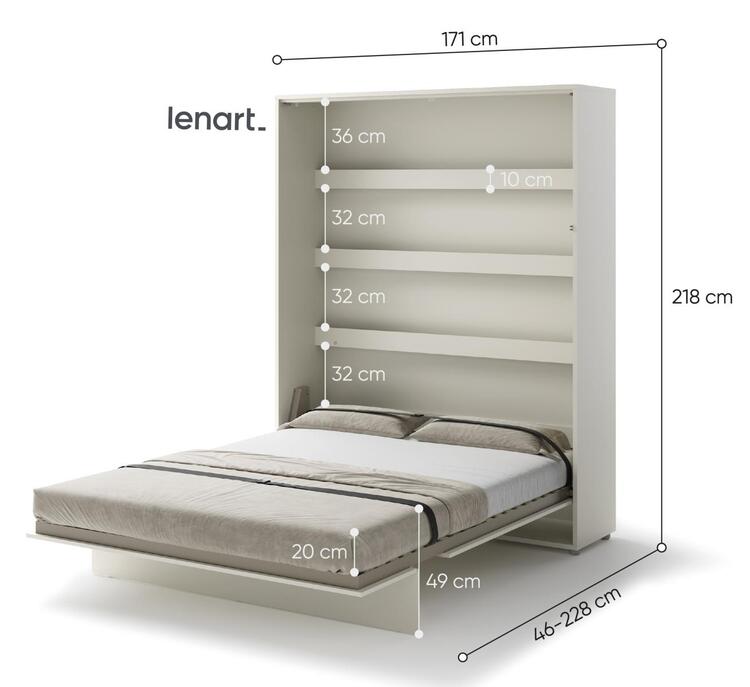 Vysoká výklopná postel 160 kašmír (béžová s nádechem šedé). Rozměry viz obrázek. Se sklápěcí postelí Vás už nebude trápit malý prostor Vaší domácnosti. Díky stabilní konstrukci zaručuje pohodlný odpočinek. Pneumatický mechanismus sklápění postele zajistí bezpečné otevírání a je doplněn SOFT CLOSE systémem tichého zavírání. Tento výjimečný systém Vám umožní manipulaci pouze jedním prstem. Když je postel sklopená, vypadá jako běžná skříň. Vyklopením se vytáhne celá délka postele. Při lozložení postele má hloubku 228 cm. Uvnitř skříně jsou praktické police na knížky nebo dekorační předměty, vše máte na dosah ruky. Rám je nutno přišroubovat ke zdi, nosnost postele je 200 kg. Rošt postele je v ceně, matrace není součástí, je potřeba ji dokoupit. Doporučujeme velikost 160 × 200 x výšku do 18 cm. Po sklopení postele vzniká prostor pod postelí o výšce 20,4 cm. Nábytek je vyroben z kvalitního lamina s ABS hranou. Lamino je odolné proti poškrábání, poškození, vlhkosti a vysokým teplotám. Postel nabízíme v několika velikostech a barevných provedeních. K posteli je možné dokoupit LED osvětlení. Dodáváme v demontovaném stavu.Můžete si prohlédnout prezentační video, klikněte <a href=" CASA 73026
