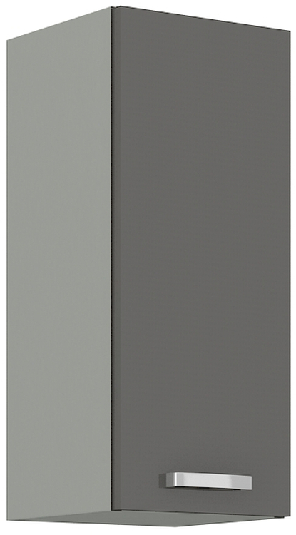 Horní skříňka jednodveřová GREY vyrobená z kvalitního lamina a MDF. Korpus je v barvě šedá a dvířka v barvě grey šedá v lesku. Rozměry skříňky – šířka 30 cm, výška 71,5 cm, hloubka 31 cm. Úchyty jsou z kovu. Dvířka mají levé otvírání. V naší nabídce naleznete další výběr skříněk k sestavení... více informací o zboží
