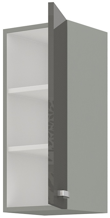 Horní skříňka jednodveřová GREY vyrobená z kvalitního lamina a MDF. Korpus je v barvě šedá a dvířka v barvě grey šedá v lesku. Rozměry skříňky – šířka 30 cm, výška 71,5 cm, hloubka 31 cm. Úchyty jsou z kovu. Dvířka mají pravé otvírání. V naší nabídce naleznete další výběr skříněk k sestavení... více informací o zboží