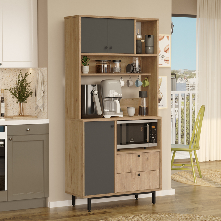 Policová skříň je ideálním řešením pro praktické a stylové uspořádání vaší kuchyně. Tato vysoká víceúčelová skříň nabízí dostatek úložného prostoru, který zahrnuje i místo pro mikrovlnnou troubu. Díky modernímu designu a kvalitnímu zpracování je skříň nejen funkční, ale také estetickým doplňkem vašeho interiéru.
