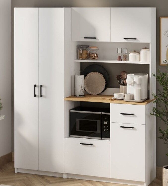 pro mikrovlnnou troubu disponuje také zásuvkou a spodními skříňkami,