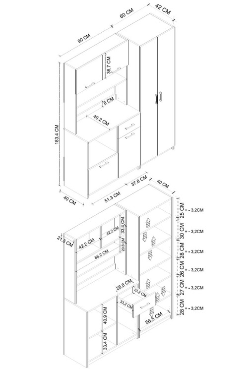 interiérů. Skládá se z dvoudveřové policové skříně a skříňky na