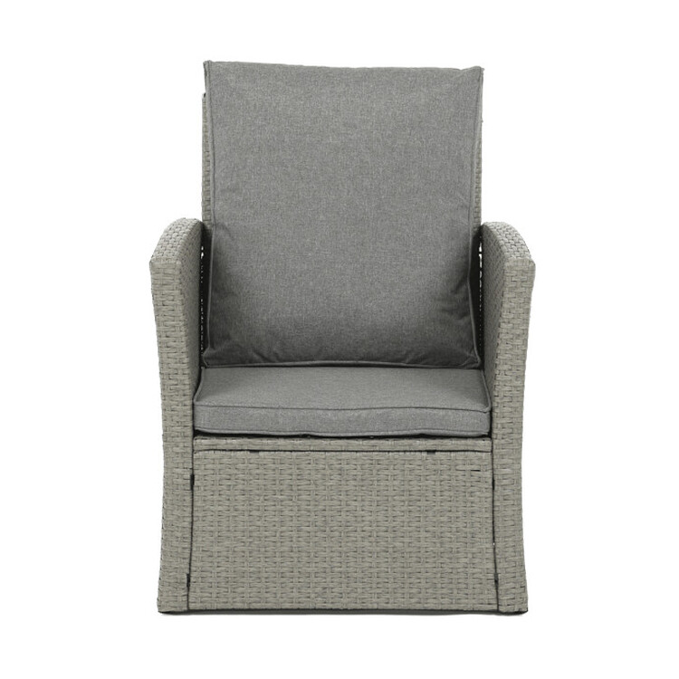 Zahradní sestava z kolekce Autronic kombinuje pevný rám z kovu s odolným polyratanem v šedém odstínu, který je navržen pro dlouhou životnost a snadnou údržbu. Sedací část je doplněna polštáři potaženými příjemnou látkou v šedé barvě, která zajišťuje komfort při posezení. Součástí sestavy je také nízký konferenční stolek s deskou z tvrzeného skla, která je snadno čistitelná a odolná vůči povětrnostním vlivům. Nadčasový design a kombinace materiálů umožňují využití sestavy jak na terase, tak v zahradním altánu. Celková stabilita a kvalitní provedení zaručují pohodlné a bezpečné užívání.