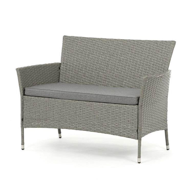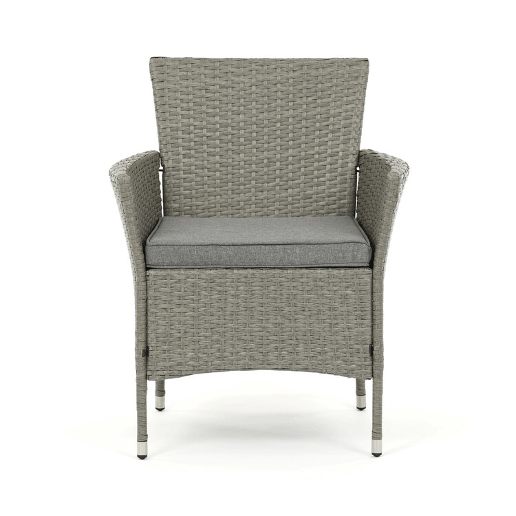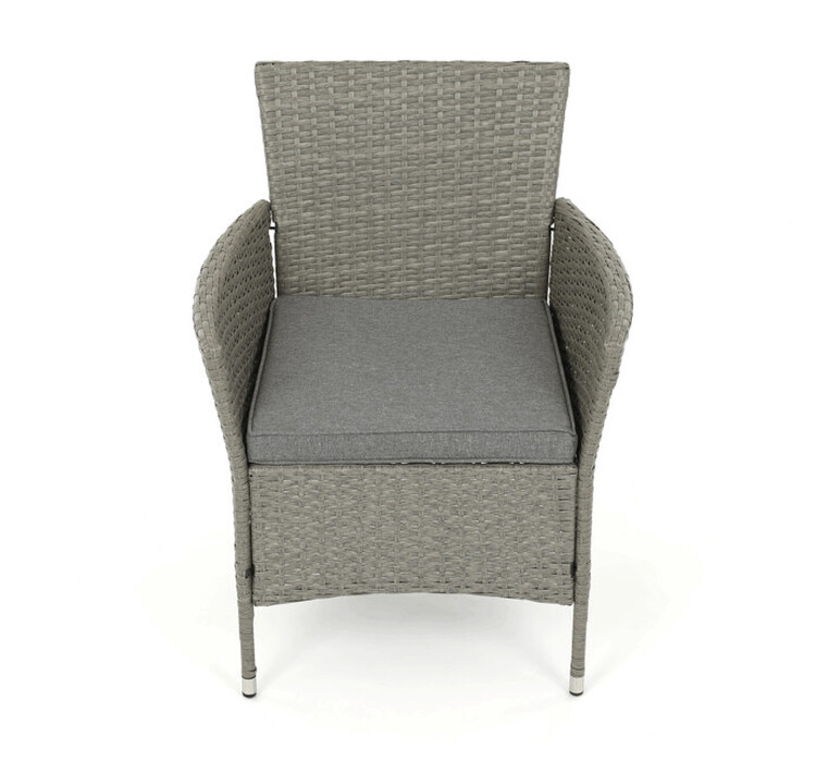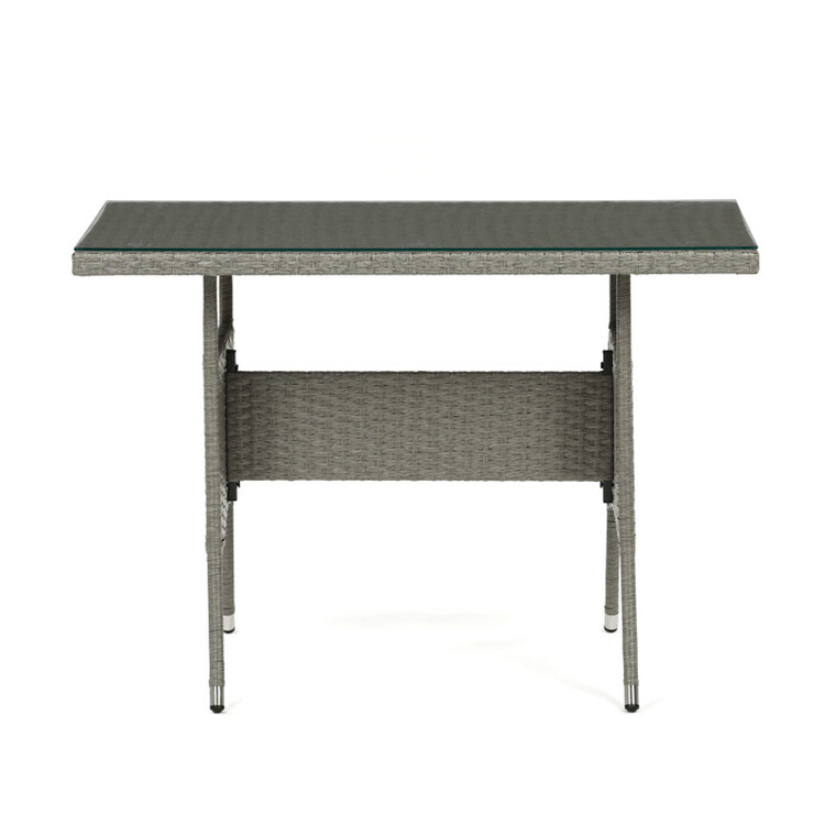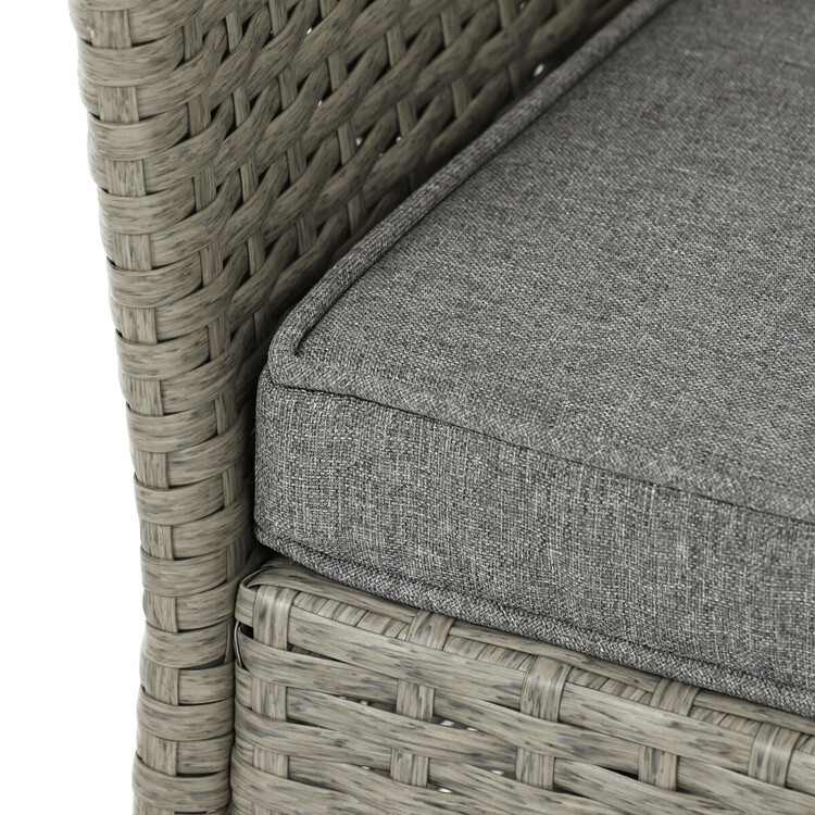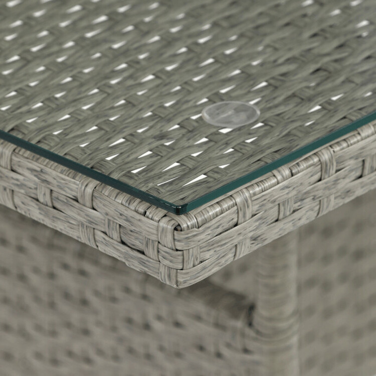 Zahradní sestava s jídelním stolem je vyrobena z odolného polyratanu v šedém odstínu, který věrně imituje přírodní ratan a je vhodný pro venkovní použití. Pevná kovová kostra zajišťuje stabilitu a dlouhou životnost celé sestavy, zatímco deska stolu z tvrzeného skla přináší snadnou údržbu a... více informací o zboží