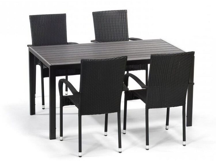Zahradní stůl s odolnou Artwoodovou deskou a hliníkovou konstrukcí. Artwood neboli polywoodová deska je plastové syntetické dřevo a je to materiál vhodný pro venkovní používání. Nohy stolu jsou vybaveny adaptéry pro větší stabilitu. Rozměry stolu jsou ( Š x V x H cm ) – 120 × 74 × 70 cm. Barevné provedení – černá.