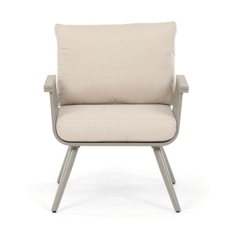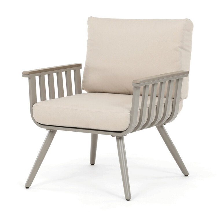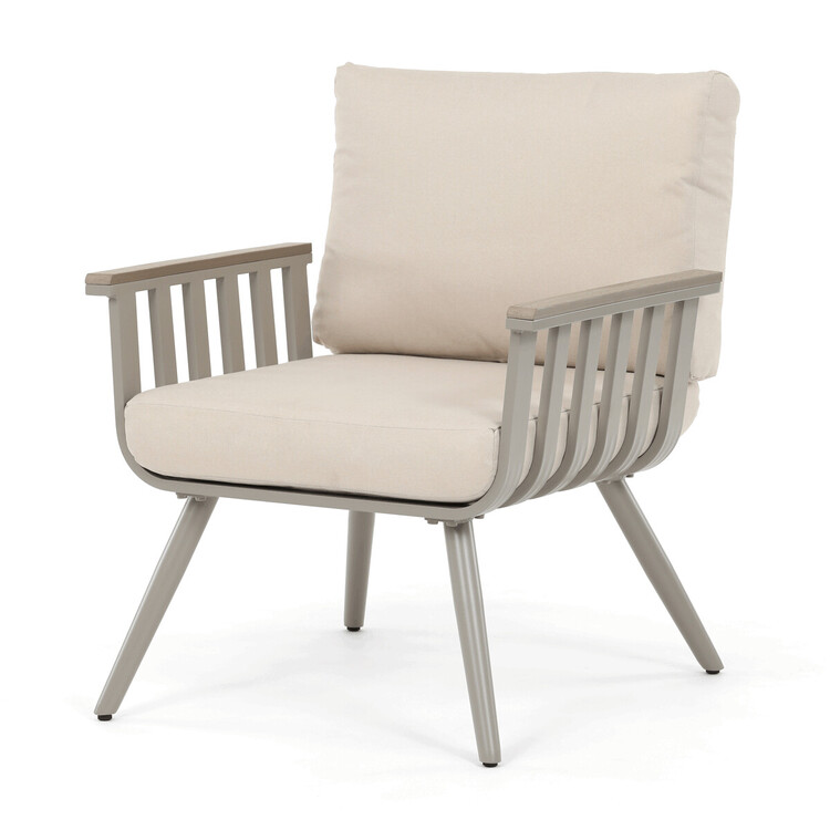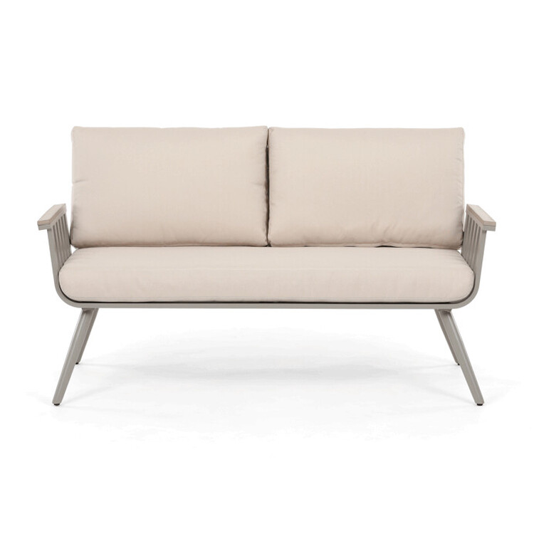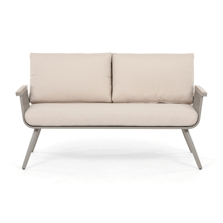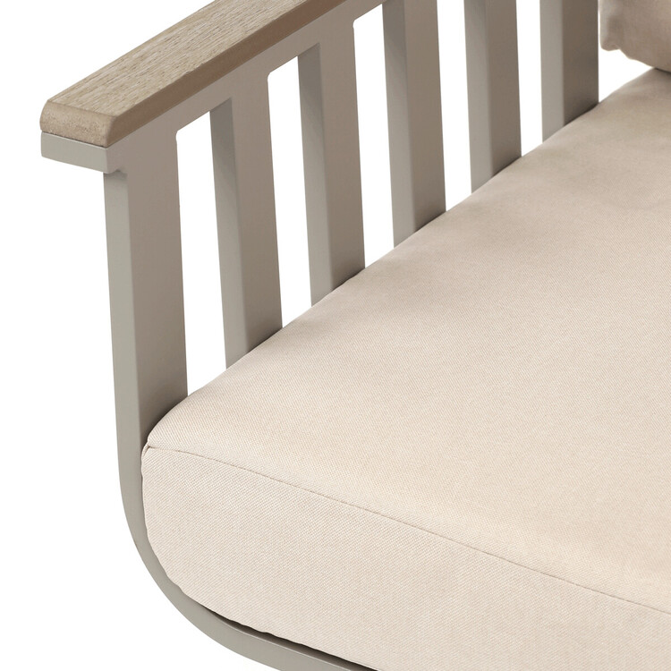 Zahradní set v béžovém provedení kombinuje pevný hliníkový rám s odolným polywoodem v dekoru divoký dub, který věrně napodobuje přírodní dřevo a snadno se udržuje. Součástí je praktický stůl s deskou z bezpečnostního skla, které zajišťuje stabilní a hladký povrch vhodný pro venkovní použití. Pohodlná křesla i dvoumístná pohovka mají ergonomicky tvarované opěradlo a sedáky s polstrováním v neutrální béžové barvě, které zvyšují komfort při posezení. Celý set je navržen s ohledem na stabilitu a dlouhou životnost, ideální pro relaxaci i společenské chvíle na zahradě či terase.