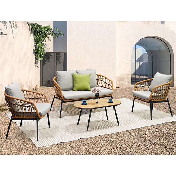 Tato zahradní sedací souprava značky Autronic je perfektní volbou pro každou venkovní terasu či zahradu. Je vyrobena z odolného polyratanu v přírodním odstínu, který dodává nábytku svěží a moderní vzhled. Konstrukce z kovu s práškovou úpravou v antracitové barvě zaručuje dlouhou životnost a... více informací o zboží