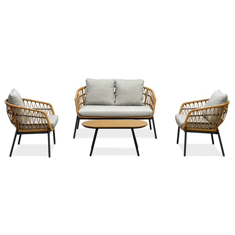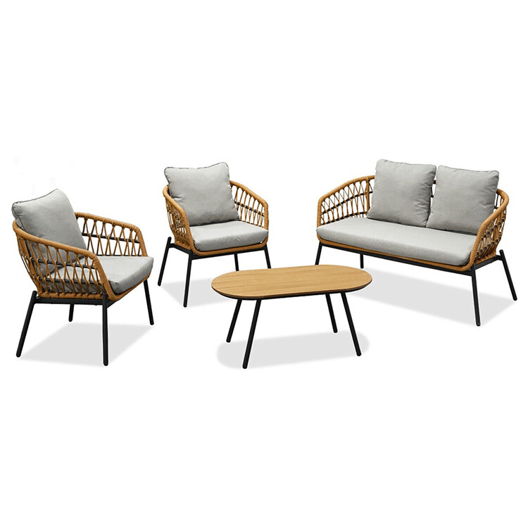 Tato zahradní sedací souprava značky Autronic je perfektní volbou pro každou venkovní terasu či zahradu. Je vyrobena z odolného polyratanu v přírodním odstínu, který dodává nábytku svěží a moderní vzhled. Konstrukce z kovu s práškovou úpravou v antracitové barvě zaručuje dlouhou životnost a stabilitu. Voděodolné polštáře poskytují maximální pohodlí a jsou ideální pro venkovní použití za každého počasí. Deska stolku je vyrobena z polywood materiálu, který má velmi dlouhou životnost a je odolný proti vnějším vlivům počasí.Tento set kombinuje styl a funkčnost, ať už chcete relaxovat nebo uspořádat venkovní posezení s přáteli. Souprava je navíc snadno udržovatelná a velmi praktická.