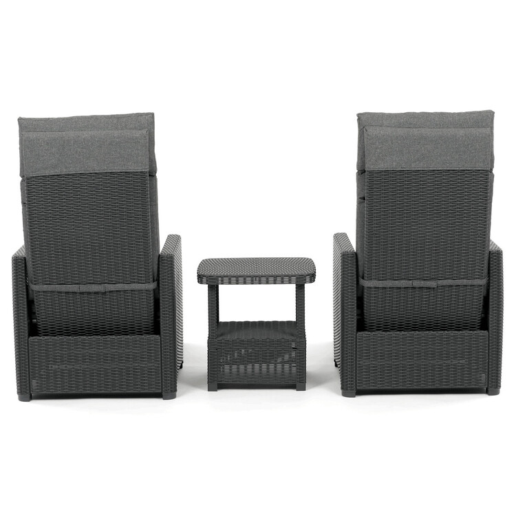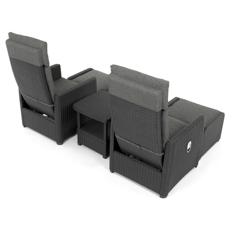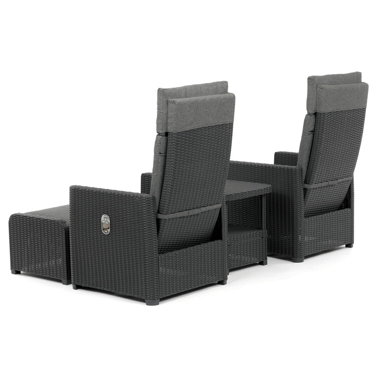 Zahradní set 1+2 v šedém provedení kombinuje pevný kovový rám s výplní z polyratanu které zajišťuje snadnou údržbu a dlouhou životnost i při venkovním použití. Sada obsahuje dvě polohovací křesla s nastavitelným sklonem opěradla pro maximální komfort a dva bonusové taburety, které lze využít jako podnožky nebo další sedací plochy. Součástí je také praktický stolek s deskou z umělého ratanu, který doplňuje celkový vzhled a funkčnost setu. Ideální volba pro relaxaci na zahradě, terase či balkóně.