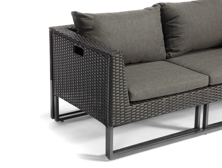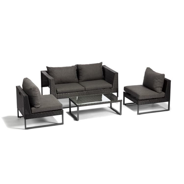 Spíše než zahradní sestavou to můžete nazvat oázou klidu. Přímo stvořená pro odpočinek na zahradě. Velmi jednoduchá a přitom jedna z nejpraktičtějších zahradních sestav. Skládá se z lavice, konferenčního stolku a dvou křesel, které se dají zasouvat pod lavici a šetří tak místo. Sestava je postavena na stabilní ocelové konstrukci, která je lehká pro přenášení a zároveň pevná a kterou obepíná proplétaný ratan. Ten velmi dobře odolává nepříznivým vlivům počasí a je naprosto bezúdržbový. I přes na oko menší rozměry se nemusíte bát o komfort. Ten zajišťují pečlivě vybrané, kvalitní podsedáky a měkké polštáře. Vy se tak budete moct 100% věnovat svému odpočinku. Pořiďte si i Vy ekonomicky velmi výhodnou zahradní sestavu!
