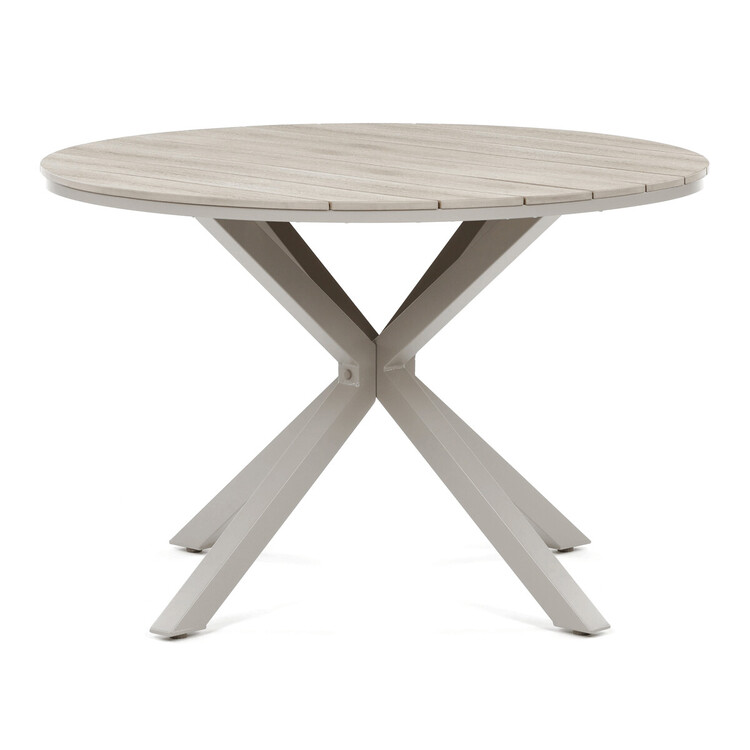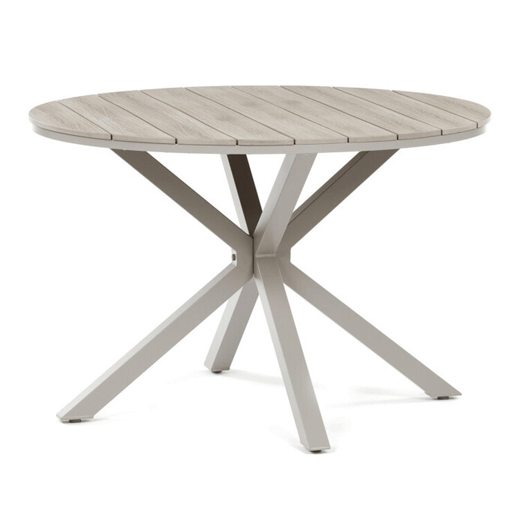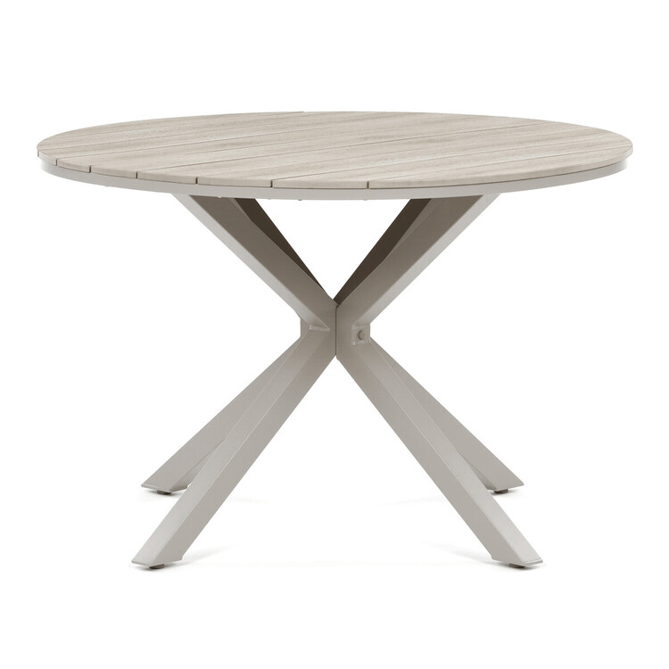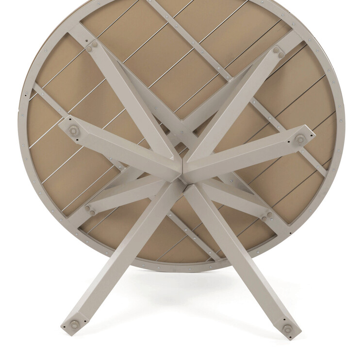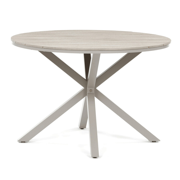 Zahradní stůl o rozměrech 110×75 cm kombinuje pevnou hliníkovou podnož s deskou z polywoodu v dekoru divoký dub, která nabízí odolnost vůči povětrnostním vlivům a snadnou údržbu. Béžové provedení desky doplňuje moderní a nadčasový design, který se hodí do různých venkovních prostor, od teras po zahrady. Stabilní čtyřnohá konstrukce zajišťuje bezpečné a pevné postavení stolu i na nerovném povrchu. Polywoodová deska věrně napodobuje strukturu dřeva, přičemž je odolná vůči vlhkosti a UV záření, což prodlužuje její životnost. Stůl je vhodný pro každodenní použití při venkovních setkáních a díky svému designu vytváří příjemné prostředí pro relaxaci i stolování.