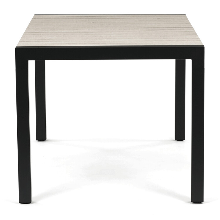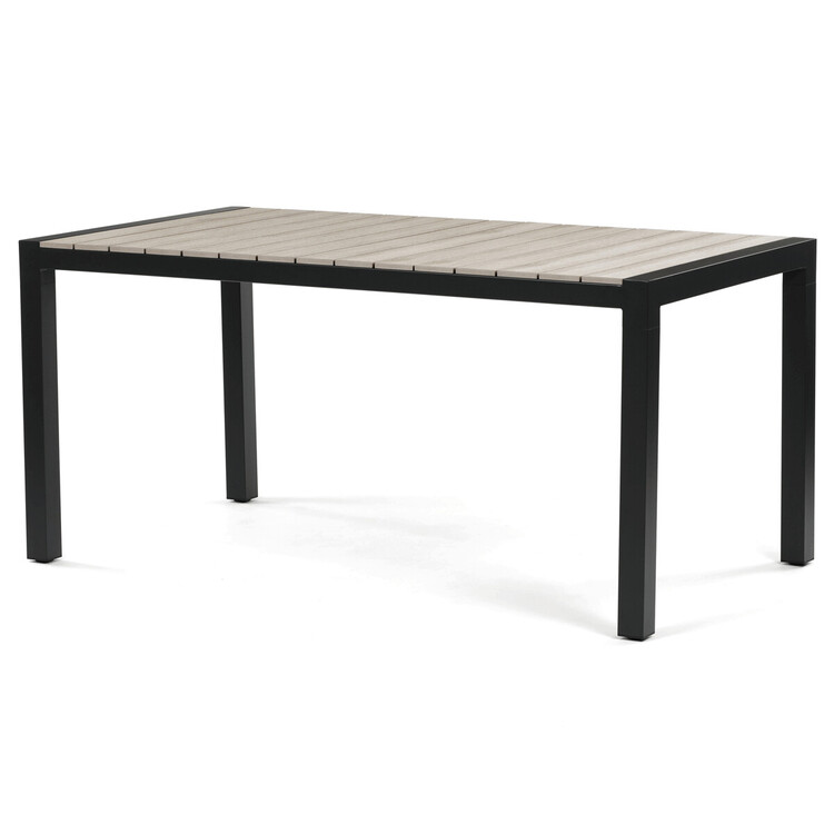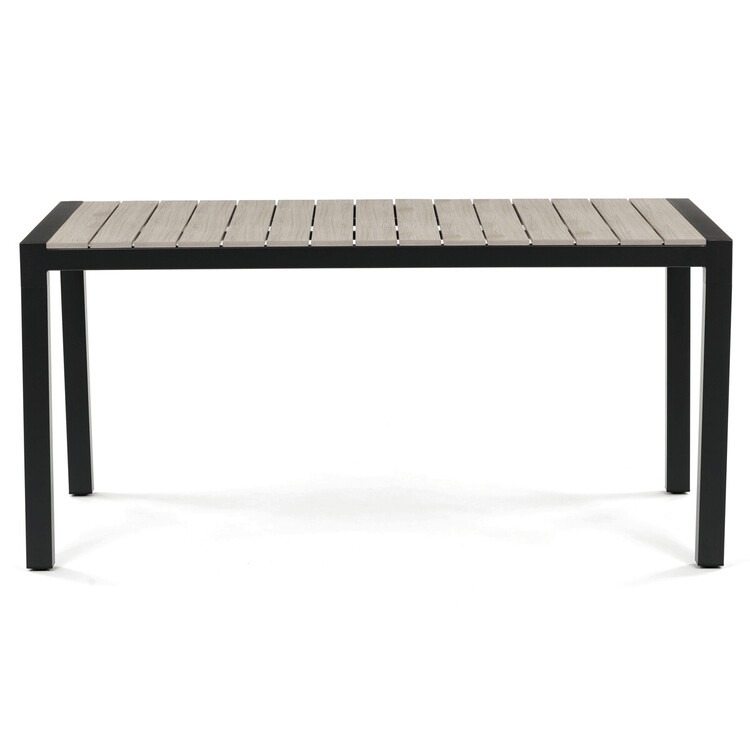 Zahradní stůl o rozměrech 160×90×75 cm kombinuje moderní černou hliníkovou konstrukci s odolnou deskou z polywoodu v dekoru dubu, která je navržena pro dlouhou životnost a snadnou údržbu. Pevná hliníková podnož zajišťuje stabilitu a odolnost vůči povětrnostním vlivům, což umožňuje využití stolu venku po celý rok. Deska stolu je tvořena z vysoce odolného polywoodu, který věrně imituje přírodní dřevo a zároveň odolává vlhkosti a UV záření. Nadčasový design s čistými liniemi se hodí do různých zahradních aranžmá a vytváří příjemné prostředí pro posezení i venkovní stolování. Stůl je vhodný pro běžné zahradní využití s důrazem na kombinaci funkčnosti a estetického vzhledu.