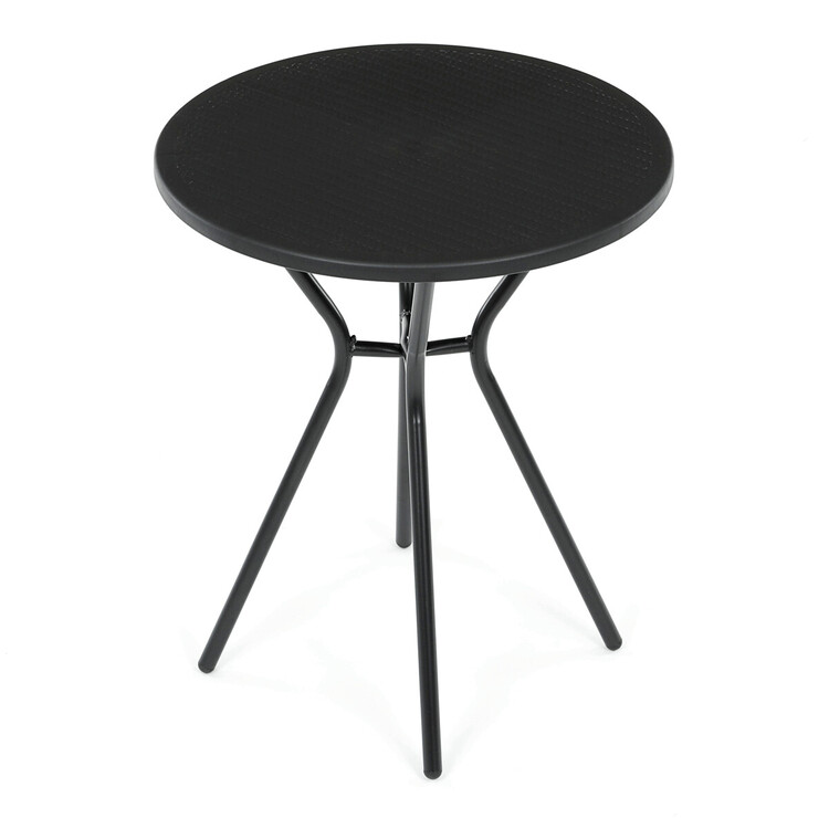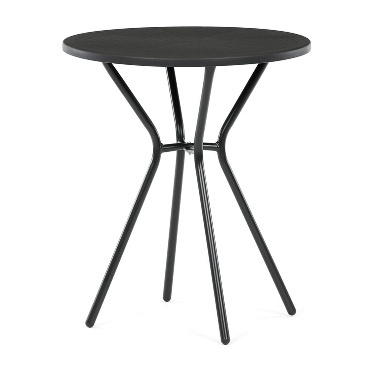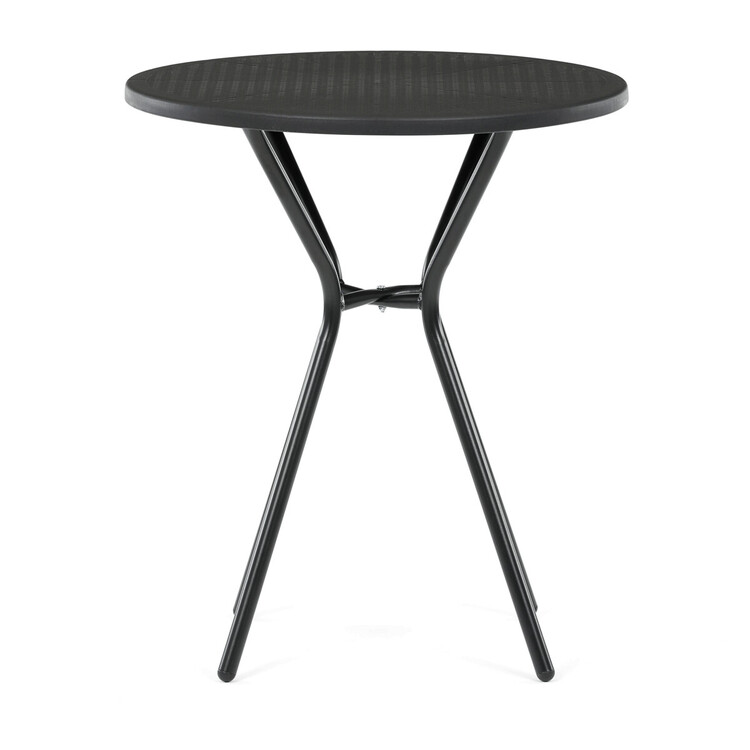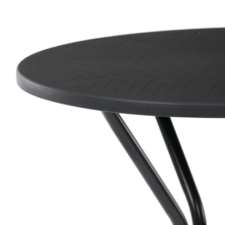 Zahradní stůl s černou plastovou deskou a stabilní kovovou podnoží nabízí praktické řešení pro venkovní posezení. Kulatý tvar desky s jemnou texturou zajišťuje snadnou údržbu a odolnost vůči povětrnostním vlivům. Kovová podnož je opatřena práškovým lakem, který chrání proti korozi a zvyšuje životnost stolu. Díky pevné konstrukci stůl poskytuje stabilní oporu pro různé aktivity na zahradě či terase. Kompaktní rozměry umožňují snadné umístění i v menších prostorách.