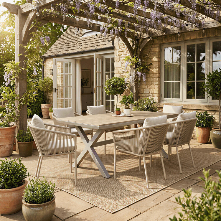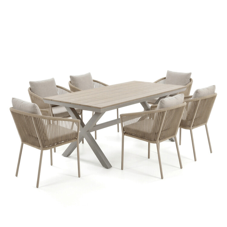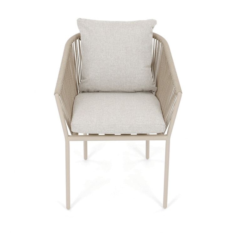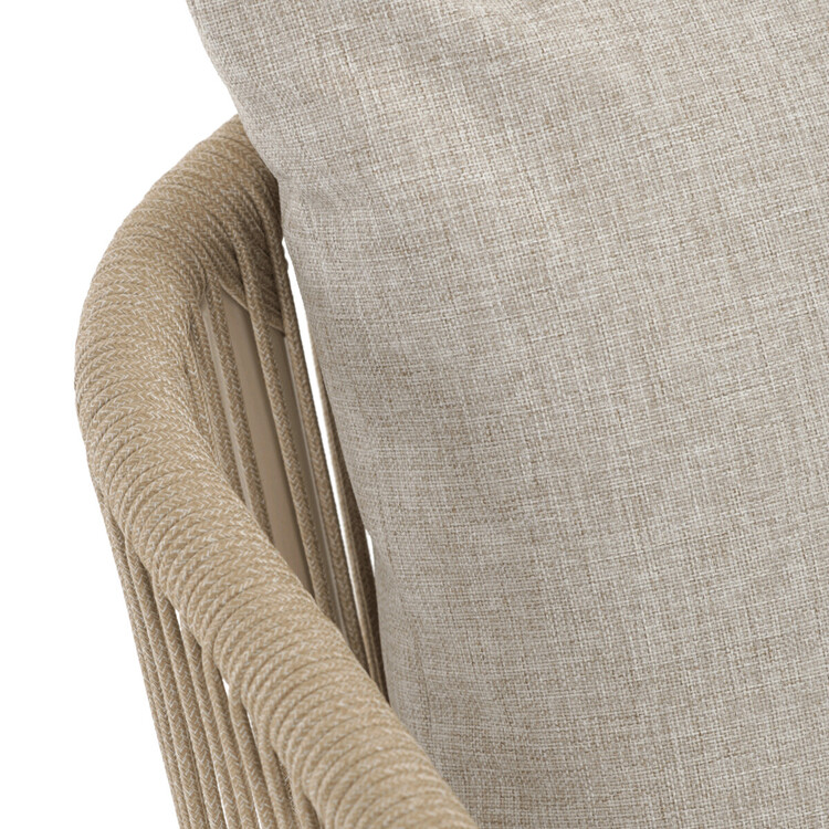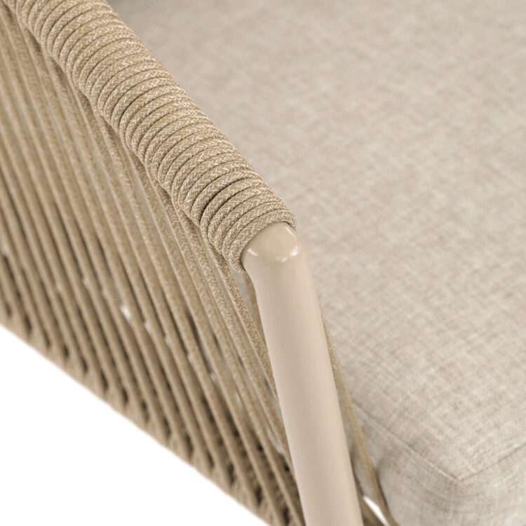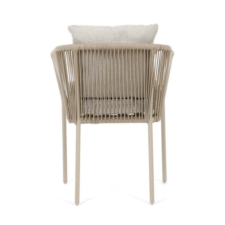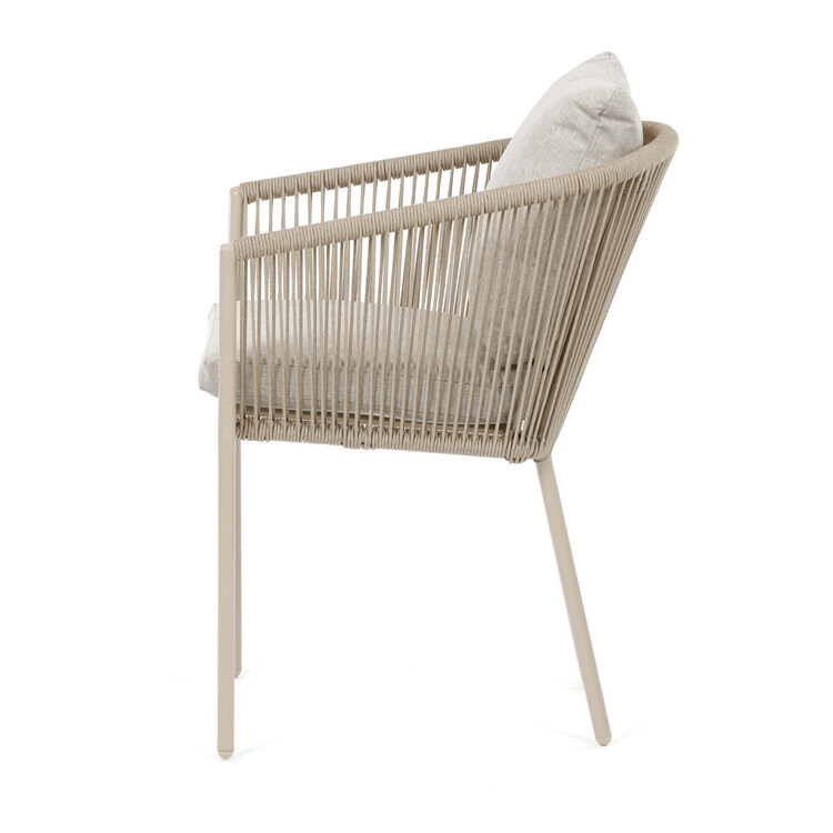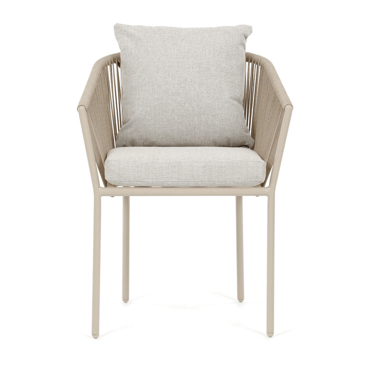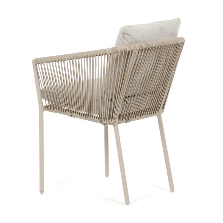 Zahradní židle s hliníkovou konstrukcí v krémovém odstínu nabízí kombinaci lehkosti a pevnosti vhodnou pro venkovní použití. Sedák a opěradlo jsou potažené rychleschnoucí látkou, která je voděodolná a odolná vůči povětrnostním vlivům, což zajišťuje snadnou údržbu a dlouhou životnost i při častém venkovním používání. Design židle je doplněn pohodlnými polštáři v béžové barvě, které zvyšují komfort sezení. Konstrukce je stabilní a zároveň lehká, což usnadňuje manipulaci a přemísťování. Rozměry a nosnost jsou přizpůsobeny běžným potřebám zahradního nábytku.