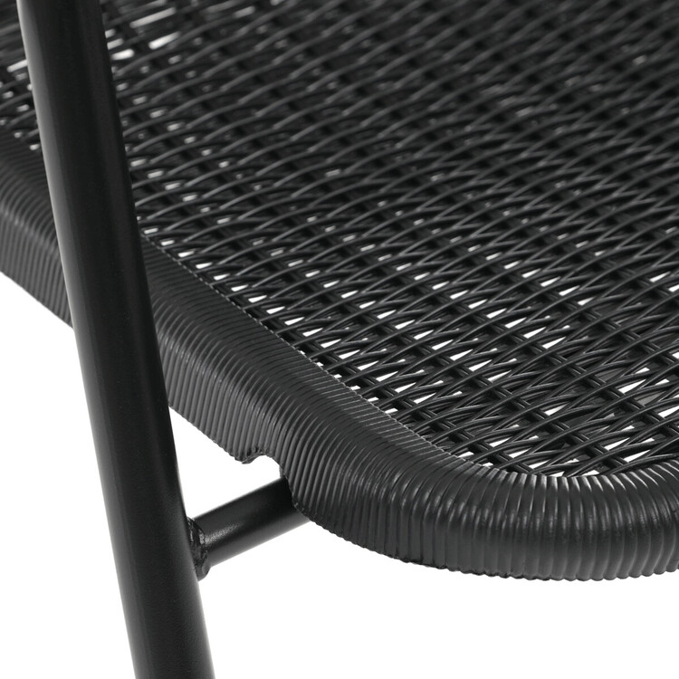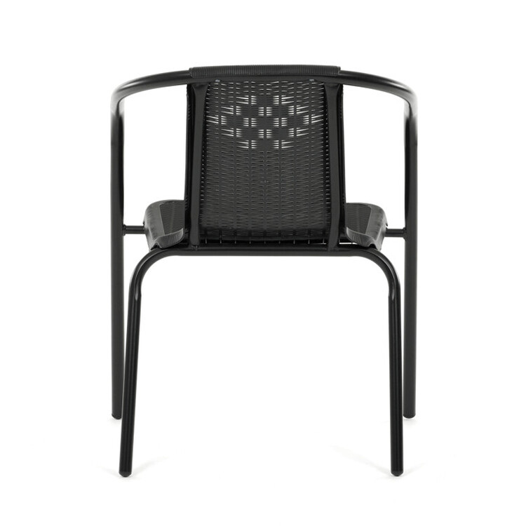 Zahradní židle v černém provedení kombinuje pevný kovový rám s odolným plastovým sedákem a opěradlem, které jsou navrženy pro snadnou údržbu a dlouhou životnost. Díky stohovatelnému designu umožňuje efektivní skladování a šetří místo při nepoužívání. Zaoblené opěrky rukou a ergonomicky tvarovaný sedák zajišťují pohodlné posezení během venkovních aktivit. Stabilní kovové nohy jsou opatřeny plastovými krytkami, které chrání podlahu a zvyšují stabilitu. Černá barva dodává židli univerzální vzhled vhodný pro různé typy zahradního nábytku.