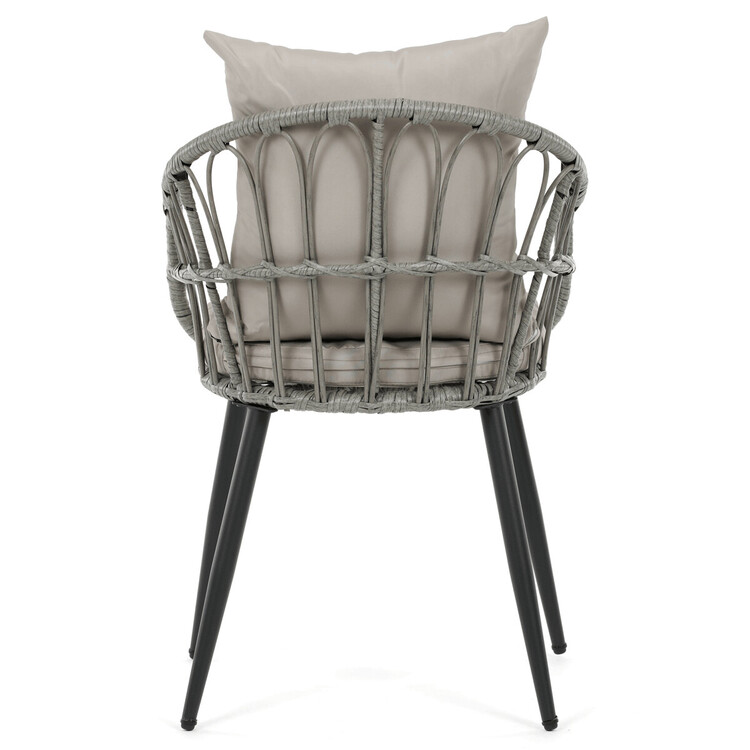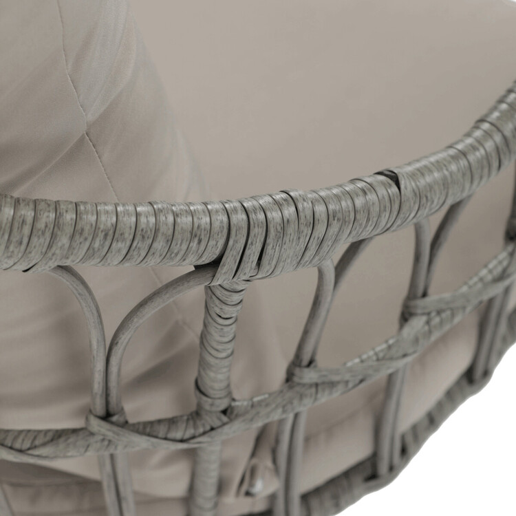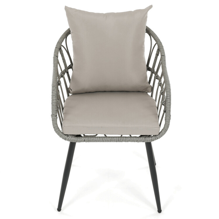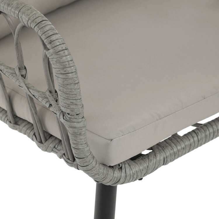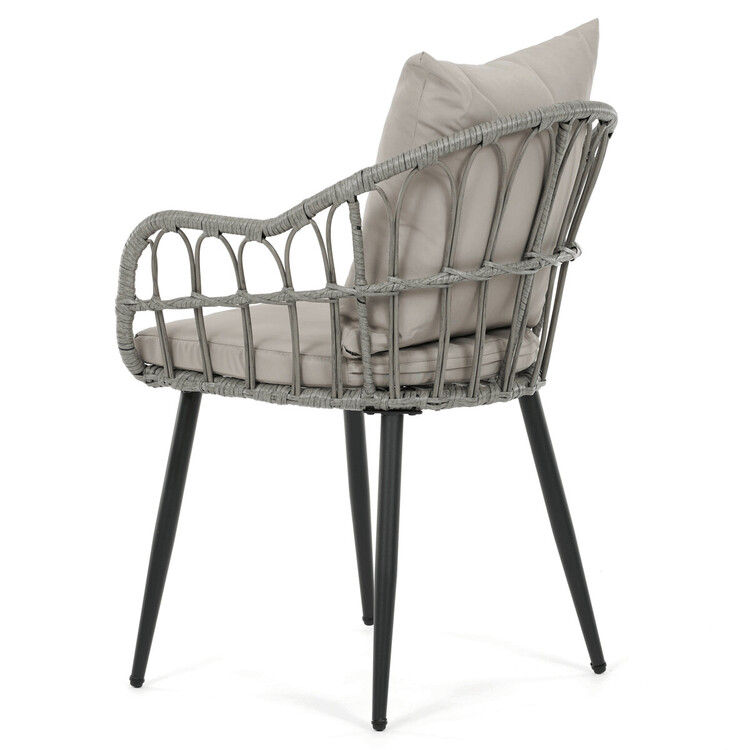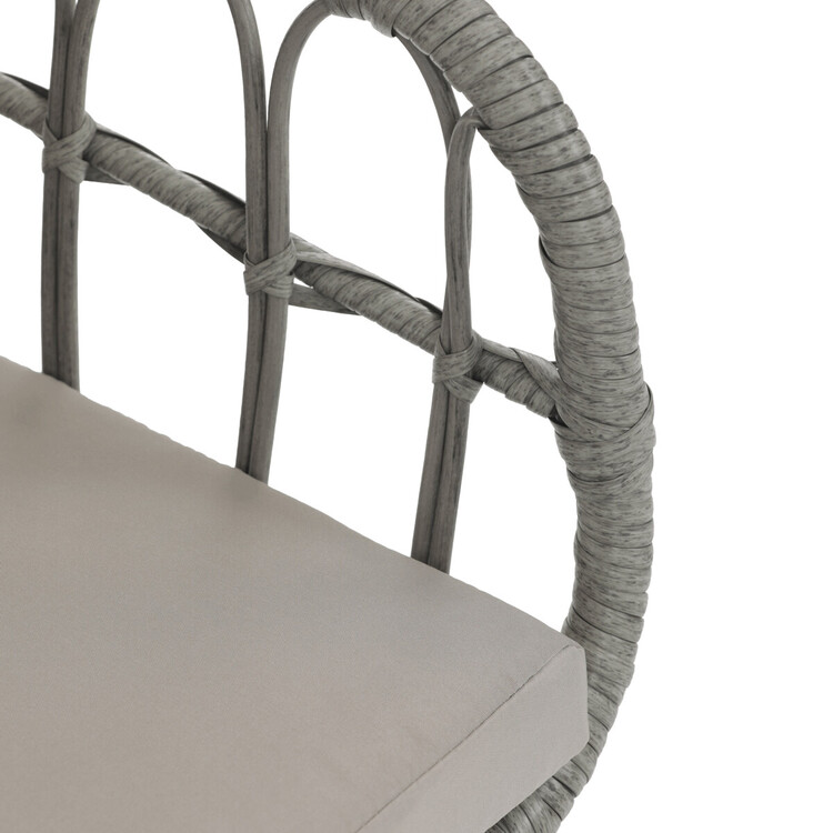 Zahradní židle s kovovým rámem a šedým umělým ratanem nabízí pevné a stabilní provedení vhodné pro venkovní použití. Sedák i opěradlo jsou vybaveny polstrováním potaženým voděodolnou látkou, která zajišťuje pohodlí i odolnost vůči povětrnostním vlivům. Konstrukce židle je navržena tak, aby poskytovala dostatečnou oporu a komfort při posezení na terase či zahradě. Čtyři kovové nohy s práškovým lakem zaručují stabilitu a dlouhou životnost. Díky neutrální šedé barvě se židle snadno kombinuje s různými zahradními sestavami.