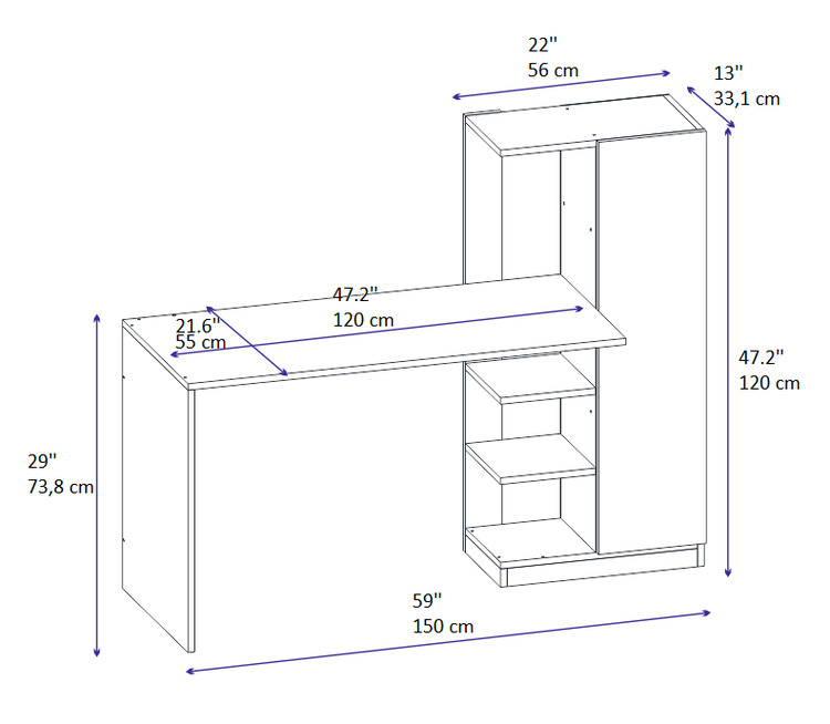 Psací stůl nabízí elegantní a praktické řešení pro práci, studium nebo organizaci vašeho prostoru. Díky svému vysokému designu s regálkem a skříňkou poskytuje dostatek úložného prostoru a usnadňuje udržování pořádku. Moderní vzhled a kvalitní zpracování zaručují, že stůl zapadne do každého interiéru.
