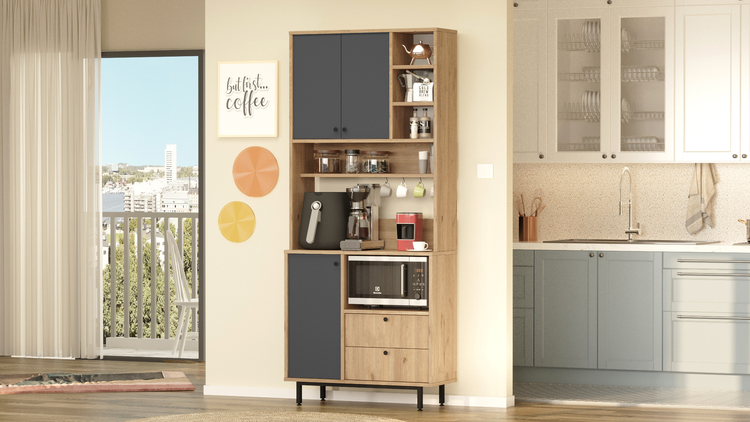 – Vysoká policová skříň na mikrovlnku s víceúčelovým designem