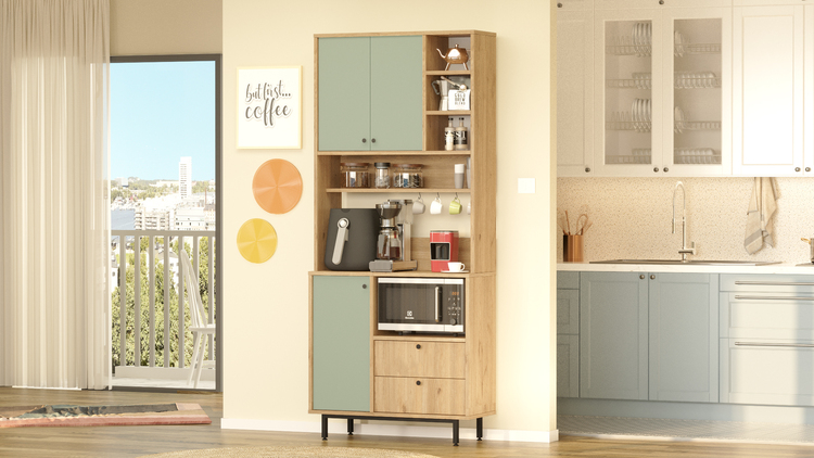 Policová skříň je ideálním řešením pro každou kuchyni. Její vysoká a kompaktní konstrukce poskytuje nejen místo pro mikrovlnnou troubu, ale i dostatek úložného prostoru na kuchyňské potřeby. Moderní víceúčelový design zajišťuje, že skříňka bude nejen funkční, ale také elegantním doplňkem vašeho interiéru.