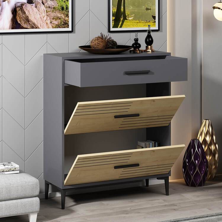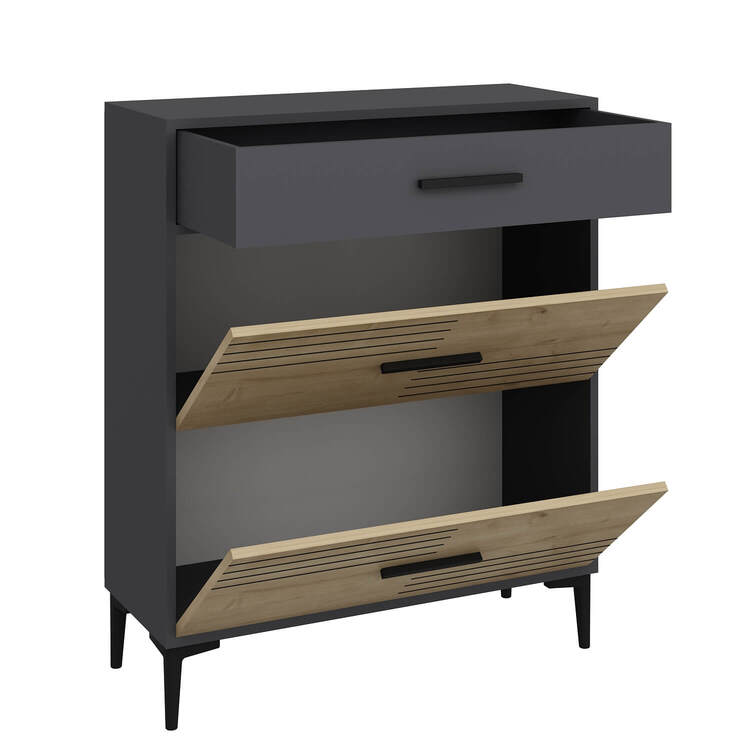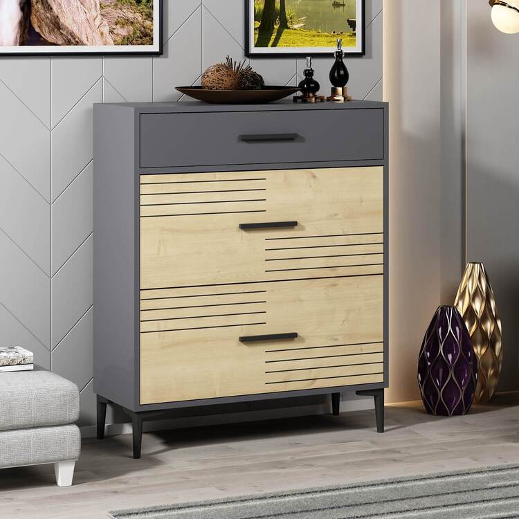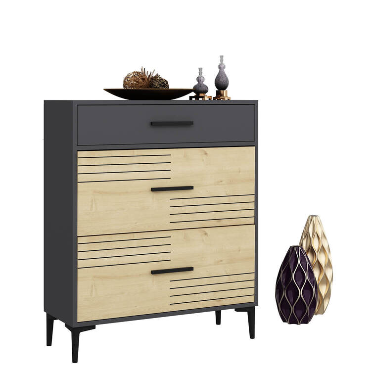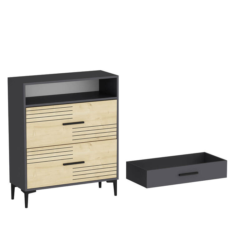 Skříňka je dodávána v demontovaném stavu s jednoduchým návodem na sestavení. Díky plastovým nožičkám je stabilní a chrání podlahu před poškrábáním. Její moderní kombinace dubu a antracitu dodává vašemu obývacímu pokoji stylový a elegantní vzhled. Tato skříňka je ideální volbou pro ty, kteří hledají praktické a designové úložné řešení.