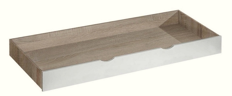 Zásuvka pod postel APETTITA ze sektorové řady, která se vyznačuje netradičním zpracováním barev a originalitou úchytů. Tento styl nábytku zaujme každou mladší generaci. Nábytek je vyroben z kvalitní LTD desky hraněné ABS lištou. Korpus je v barvě dub jasný, dvířka a čela zásuvek jsou bílé... více informací o zboží