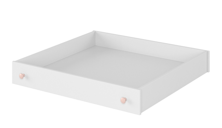 Zásuvka pod postel. Tento elegantní nábytek dodá romantickou atmosféru pokojíčku malé princezny i větší slečny. Zásuvka je vyrobena z desky LTD v barvě bílé, pro snadný pojezd má ve spodní části kolečka. Pod postel je možné umístit 2 ks zásuvek. Úchyty jsou plastové v růžové barvě. Dodáváme v demontovaném stavu.CASA 73019