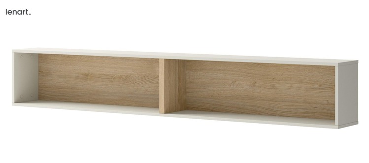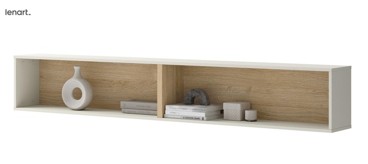 Závěsná police barva kašmír/dub nagano. Rozměry viz obrázek. Nábytek je vyroben z kvalitního lamina s ABS hranou. Lamino je odolné proti poškrábání, poškození, vlhkosti a vysokým teplotám. Dodáváme v demontovaném stavu.