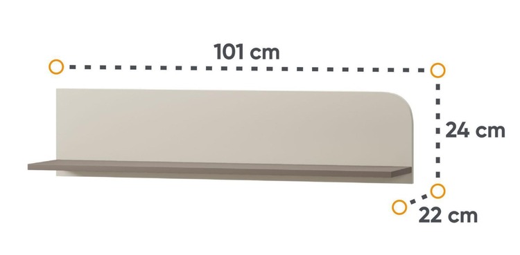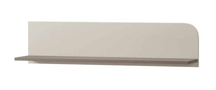 Závěsná police. Nábytek pro teenagery, který díky něžnosti hlavně ocení divky, nabízí moderní a praktické řešení do pokojů. Kombinace kašmírové a lanýžové barvy vytváří elegantní a univerzální design. Vyniká zaoblenými čely, asymetrickým stylem, které dodávají lehký vzhled. Vyroben je z odolné laminované desky o tloušťce 16 mm. Ideální volba pro stylový a funkční prostor. Dodáváme v demontovaném stavu.