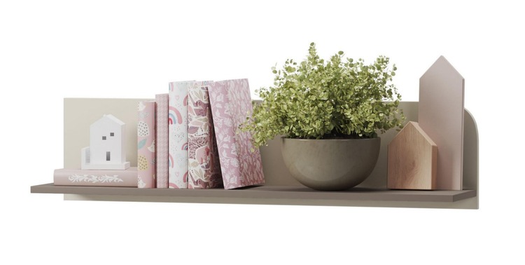 Závěsná police. Nábytek pro teenagery, který díky něžnosti hlavně ocení divky, nabízí moderní a praktické řešení do pokojů. Kombinace kašmírové a lanýžové barvy vytváří elegantní a univerzální design. Vyniká zaoblenými čely, asymetrickým stylem, které dodávají lehký vzhled. Vyroben je z odolné... více informací o zboží