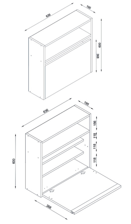 Závěsná skříňka s výklopnými dvířky je vyrobena z kvalitního lamina o tl.18 mm hraněné PVC páskou, odolného proti poškrábání v barvě matná bílá. Výška dvířek je 36,8 cm. Dodáváme v demontovaném stavu.CASA 28083