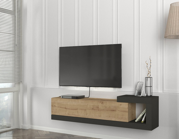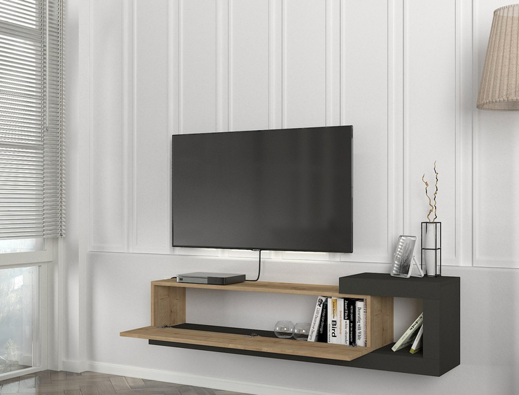 Závěsný televizní stolek je vyroben z kvalitního lamina o tl.18 mm hraněné PVC páskou, odolného proti poškrábání v kombinaci barev sapphire/antracit. Dodáváme v demontovaném stavu.CASA 28085