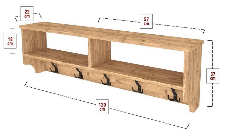 Závěsný věšák s policí je vyroben z kvalitní desky LTD nenáročné na údržbu, v barevném provedení borovice. Tloušťka materiálu – 18 mm. Dodáváme v demontovaném stavu.CASA 36064