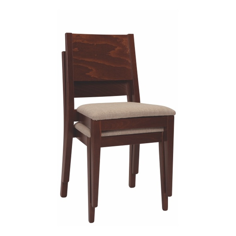 Stohovatelná židle – buková kostra a čalouněný sedák. Minimální objednávka je 30ks (restaurace, sály a pod). Možnost pevného (překližkového) sedáku. Cena položky se mění podle vybrané varianty. Pro výběr sedáku musíte zvolit odstín kostry.