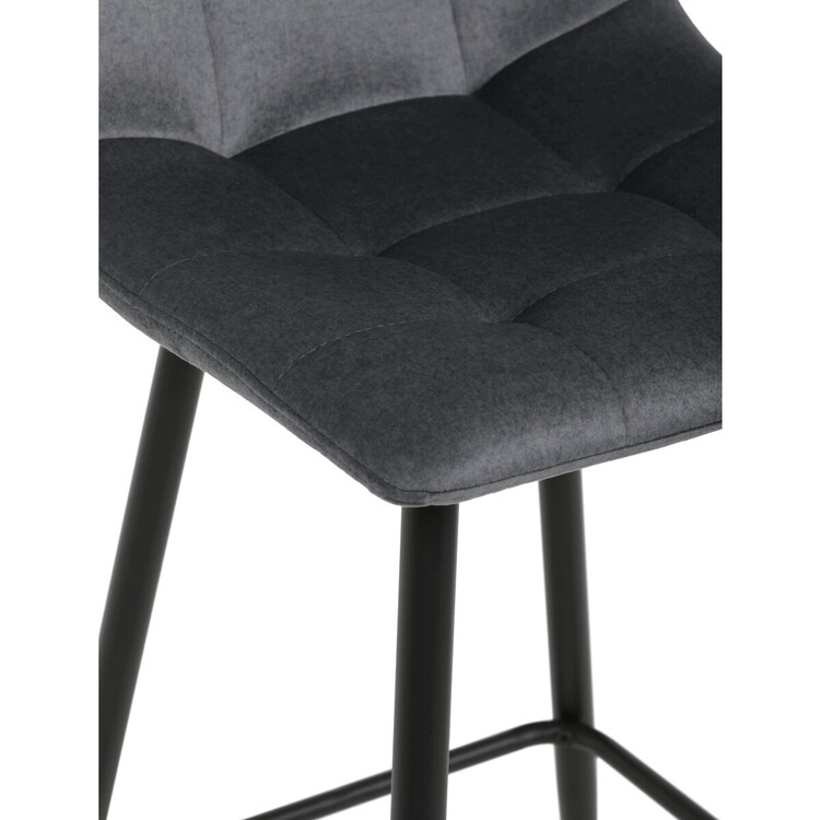 Barová židle s označením AUB-X7015 GREY2 kombinuje komfort sametové látky s pevnou kovovou podnoží v černém provedení. Sedák i opěradlo jsou čalouněné šedou sametovou látkou, která nabízí příjemný povrch a decentní prošívání dodává židli jemný designový detail. Konstrukce nohou je tvořena stabilním kovovým rámem s praktickou opěrkou nohou, která zvyšuje pohodlí při sezení. Židle nemá područky, což umožňuje snadné zasunutí pod barový pult. Díky kvalitnímu materiálu a pevné stavbě je vhodná pro dlouhodobé používání v domácnostech i komerčních prostorách.