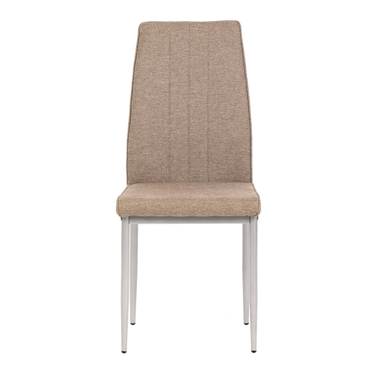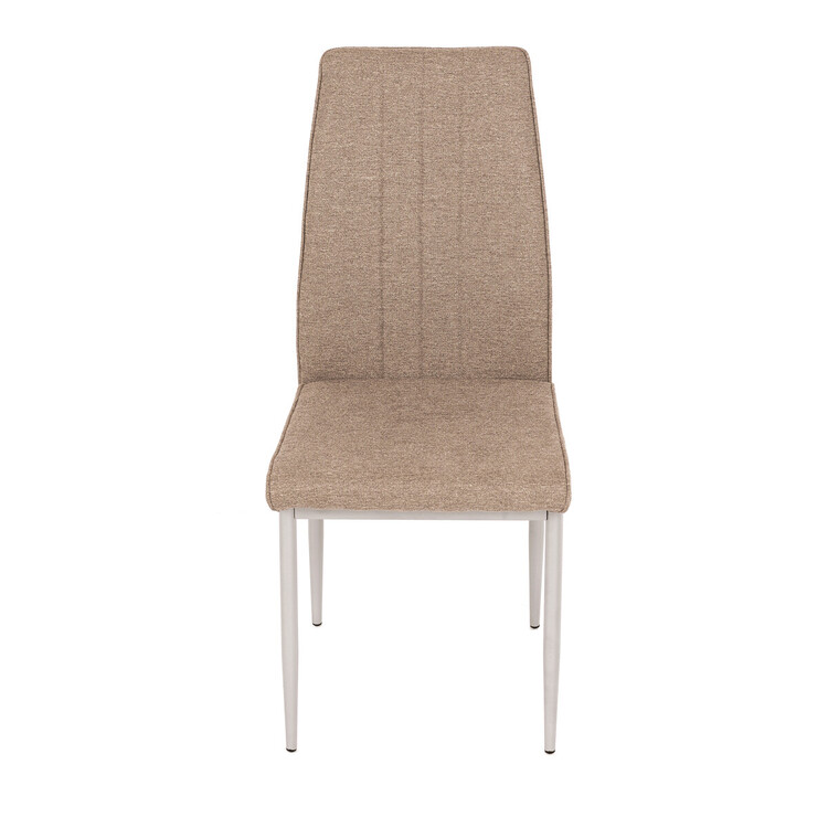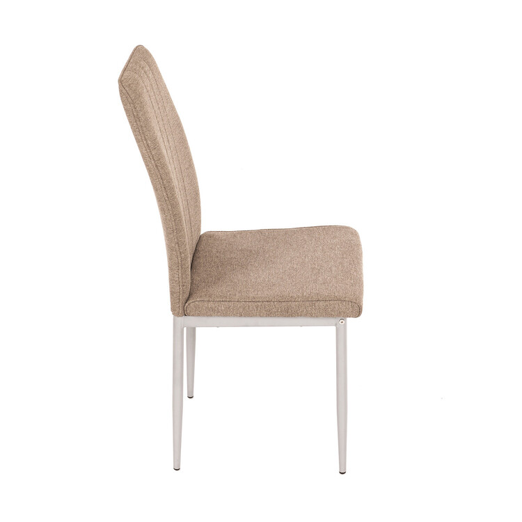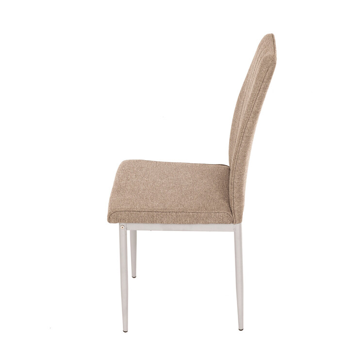 Jídelní židle Autronic v industriálním stylu zaujme svým minimalistickým designem a praktickými vlastnostmi. Potah je vyroben z odolné hladké látky v hnědé barvě, který snadno zapadne do různých interiérů. Pohodlí zajišťuje měkká PU pěna ve výplni, zatímco kovové nohy v šedé barvě dodávají stabilitu a pevnost. Elegantní prošívání dodává židli elegantní vzhled. Tento model je skvělou volbou pro moderní i klasické interiéry.