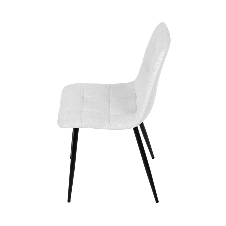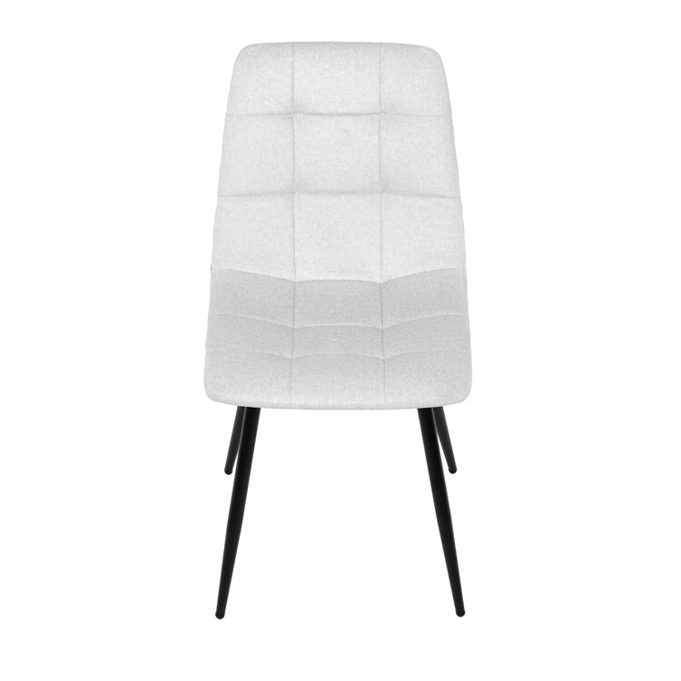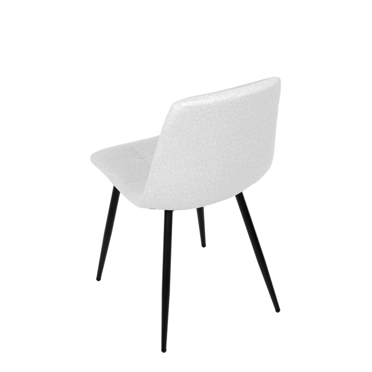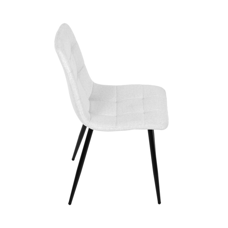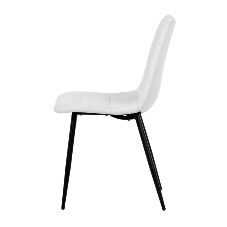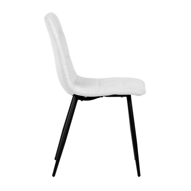 Jídelní židle s označením DCL-X7015 WT2 kombinuje moderní design s praktickým provedením. Sedák i opěradlo jsou potažené bílou sametovou látkou s výrazným designovým prošitím, které dodává židli stylový vzhled a zároveň příjemný dotek. Stabilní kovové nohy v černé barvě zajišťují pevnou a bezpečnou oporu, přičemž jejich povrchová úprava je navržena pro dlouhou životnost a snadnou údržbu. Židle nemá područky ani otočný mechanismus, což ji činí kompaktní a vhodnou do různých typů jídelních prostor. Celková konstrukce je navržena tak, aby poskytovala komfortní posezení s důrazem na estetiku i funkčnost.