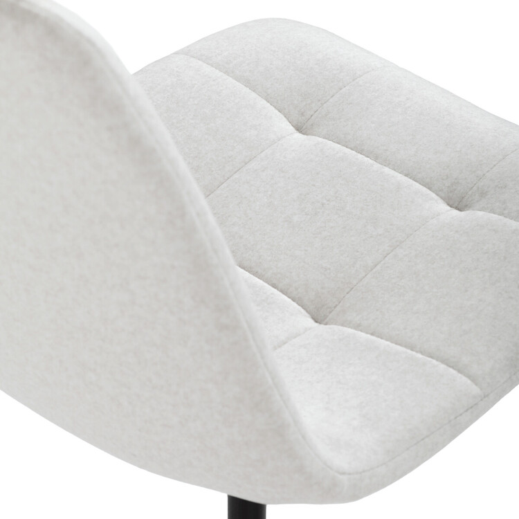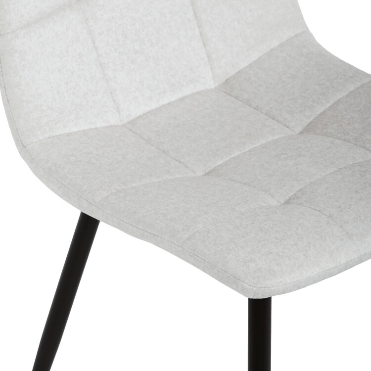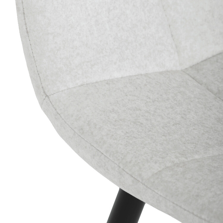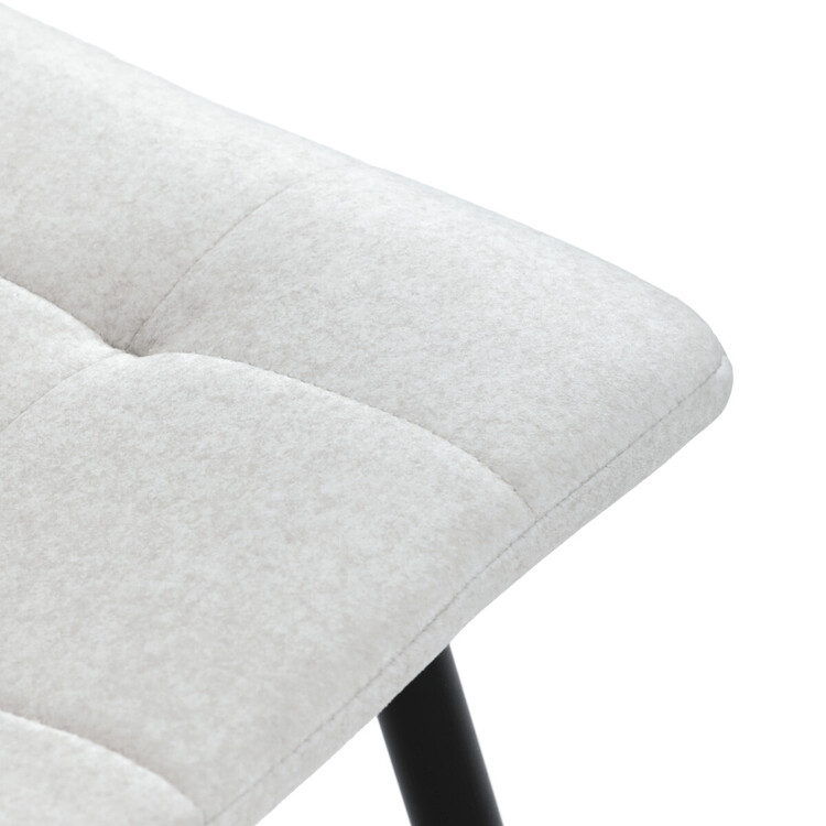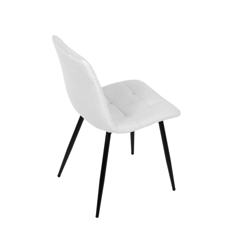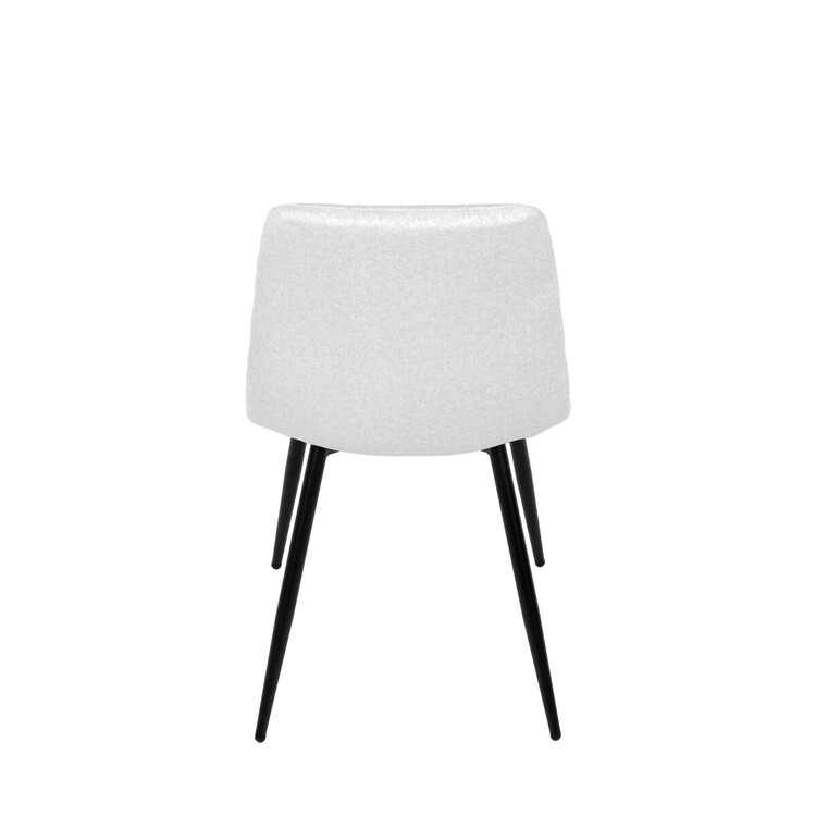 Jídelní židle s označením DCL-X7015 WT2 kombinuje moderní design s praktickým provedením. Sedák i opěradlo jsou potažené bílou sametovou látkou s výrazným designovým prošitím, které dodává židli stylový vzhled a zároveň příjemný dotek. Stabilní kovové nohy v černé barvě zajišťují pevnou a bezpečnou oporu, přičemž jejich povrchová úprava je navržena pro dlouhou životnost a snadnou údržbu. Židle nemá područky ani otočný mechanismus, což ji činí kompaktní a vhodnou do různých typů jídelních prostor. Celková konstrukce je navržena tak, aby poskytovala komfortní posezení s důrazem na estetiku i funkčnost.