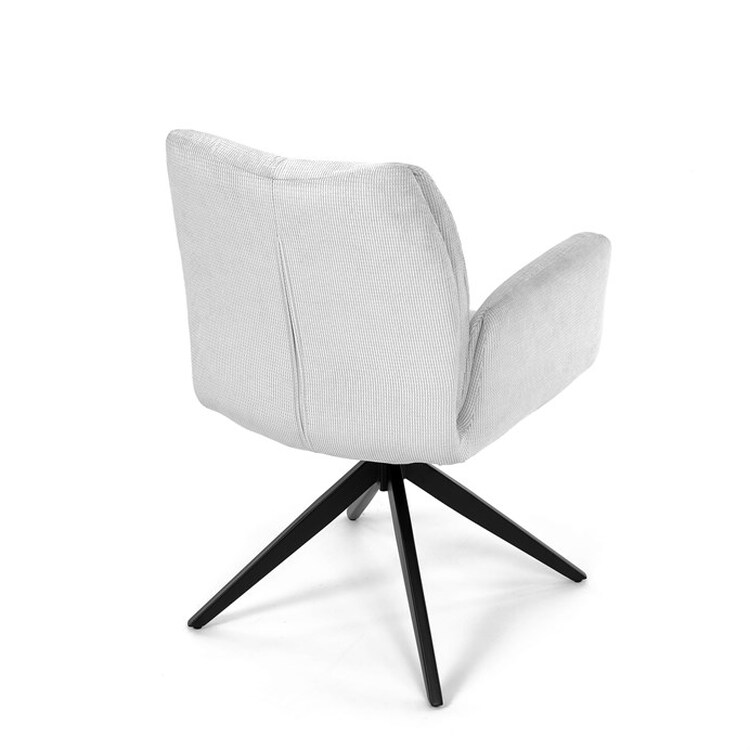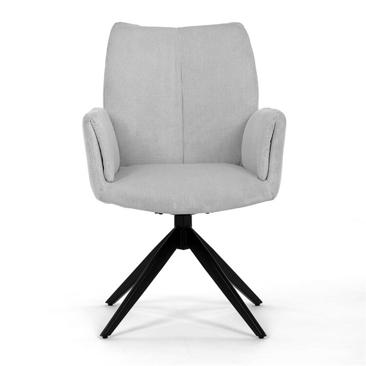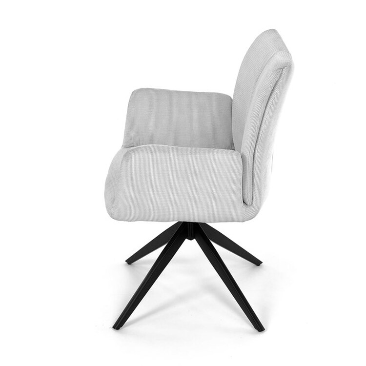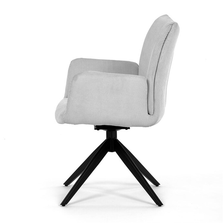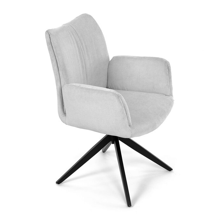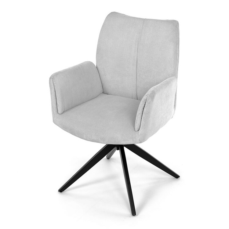 Jídelní židle Autronic je dokonalou kombinací pohodlí a stylu a je navrženo tak, aby pozvedlo úroveň každé kanceláře nebo domácnosti. Tato židle, vyrobená z nádherné bílé reliéfní látky, která hladce doplňuje její elegantní průmyslovou estetiku, slibuje nejen zvýšení vizuální přitažlivosti vašeho prostoru, ale také poskytnutí bezkonkurenčního zážitku z posezení. Její luxusní látkový potah s jemnou texturou a příjemný na dotek vybízí uživatele k dlouhému pohodlí, aniž by to bylo na úkor sofistikovanosti.Nohy židle Autronic, usazené na robustní středové základně, mají povrchovou úpravu z výrazného černého kovu, který nápadně kontrastuje s měkkým čalouněným sedákem. Tato sofistikovaná konstrukce zajišťuje stabilitu a odolnost, takže je vhodná pro sezení téměř u každého pracovního nebo jídelního stolu. Moderní styl židle podtrhuje praktická funkce otáčení o 90°, která umožňuje snadný pohyb a všestrannost v jakémkoli pracovním prostoru nebo jídelně.K ergonomickému designu židle přispívají promyšleně přiložené područky, které poskytují potřebnou oporu pro dlouhodobou produktivitu nebo klidné stolování. Židle Autronic bez námahy spojuje funkčnost se špičkovým designem, což zaručuje, že vynikne jako volba pro podniky, které chtějí vybavit své prostory předměty vypovídajícími o luxusu a profesionálním vkusu. Její industriální styl v kombinaci s pohodlím a praktickými funkcemi z ní činí nepostradatelný doplněk každého moderního pracoviště.
